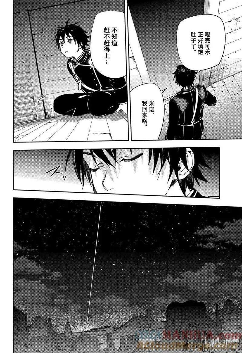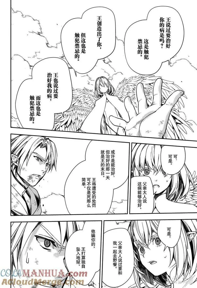 在不知什么时候,整个世界被突如其来的未知病毒攻袭,几乎彻底毁灭。但是只有13岁以下的孩子不被病毒所感染,侥幸活了下来。可是这些孩子们却被从地底出现的吸血鬼所统治,并作为提供血液的家畜饲养。故事的主人公——百夜优一郎和百夜米迦尔就是被抓住的孤儿们之一……