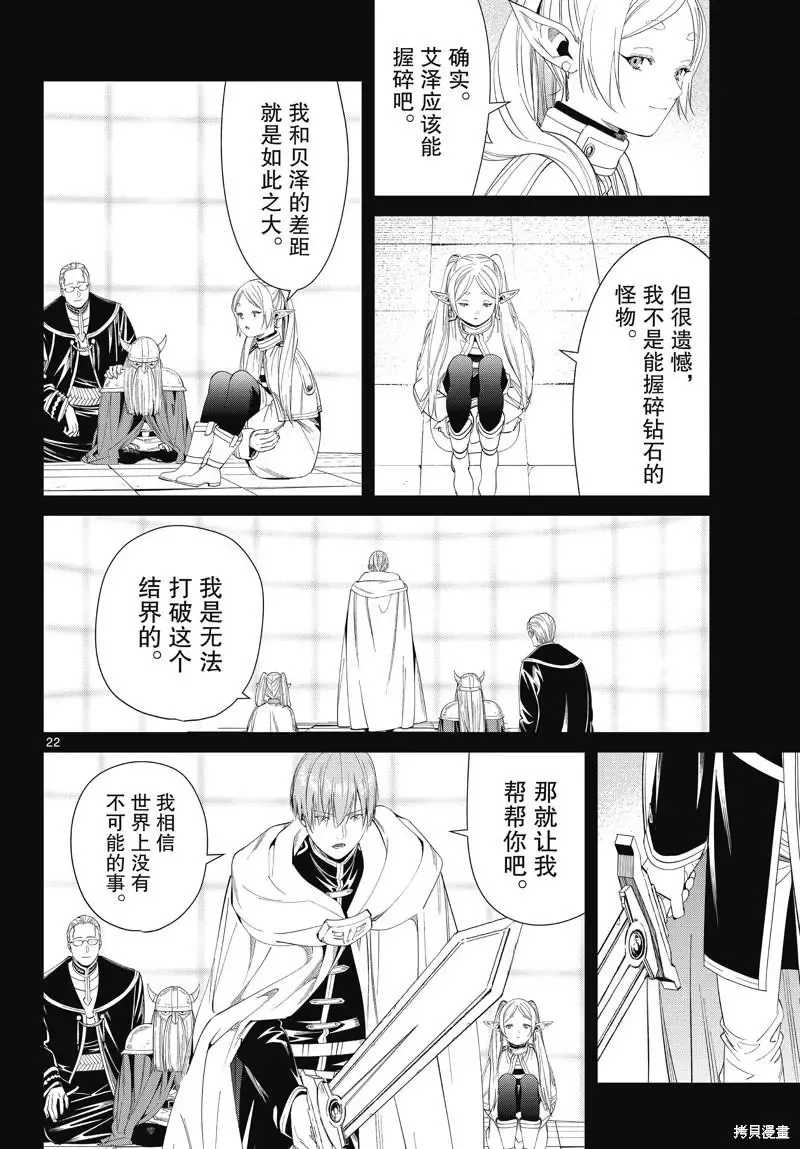 打倒魔王“之后”的勇者一行人中,身为魔法使的芙莉莲同时是一个精灵,她和另外三人有着不一样的地方。她对于生活在“之后”的世界、感受到的事情有着不一样的看法……