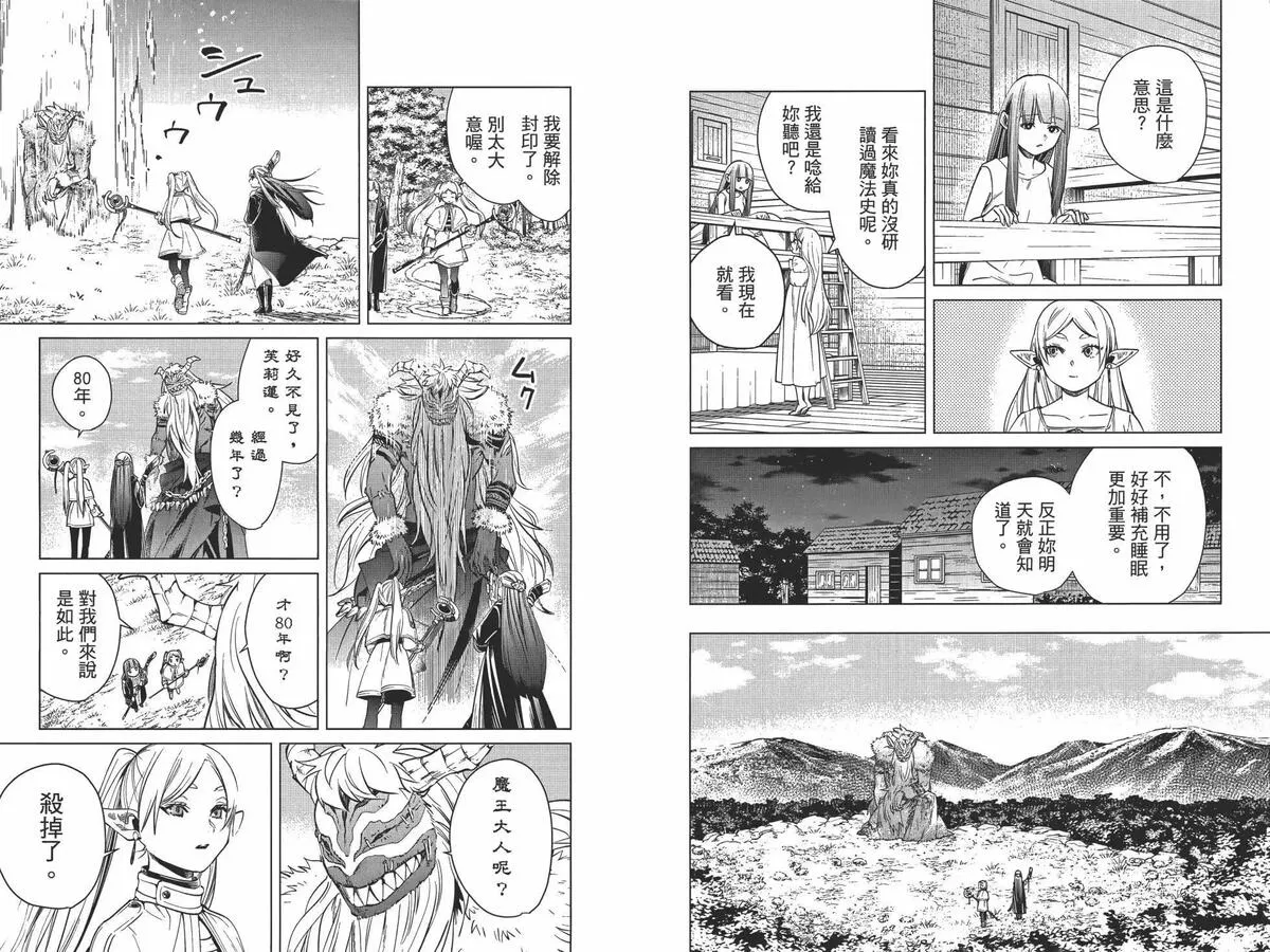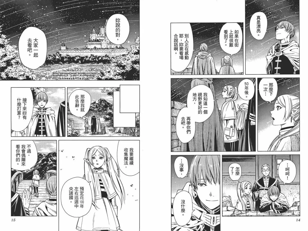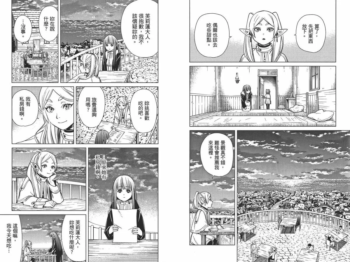 打倒魔王“之后”的勇者一行人中,身为魔法使的芙莉莲同时是一个精灵,她和另外三人有着不一样的地方。她对于生活在“之后”的世界、感受到的事情有着不一样的看法……