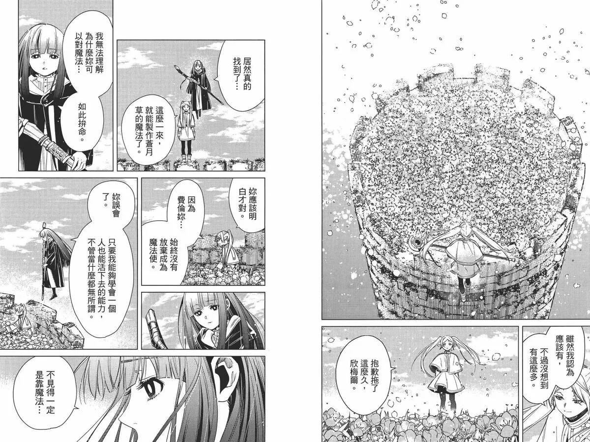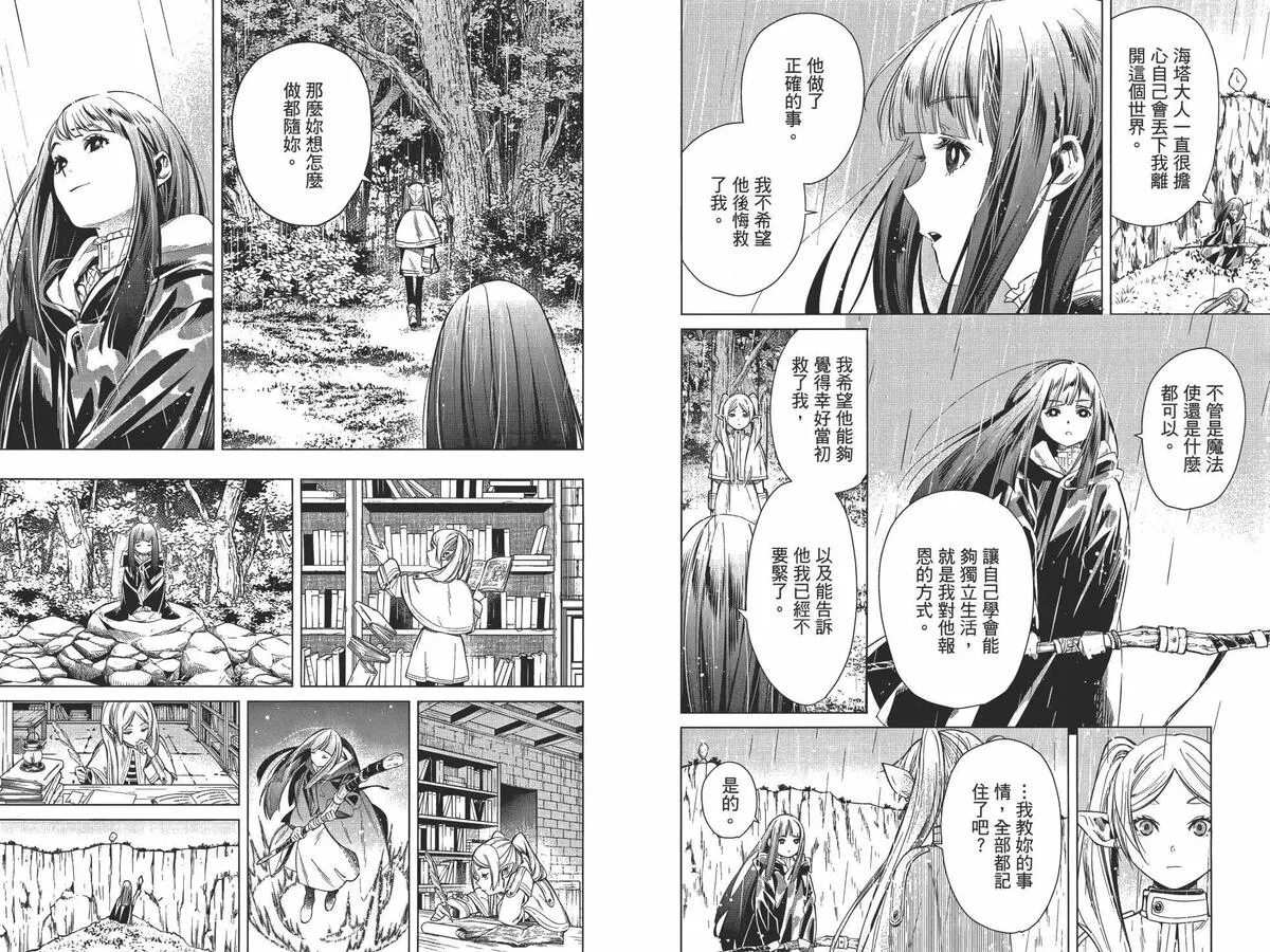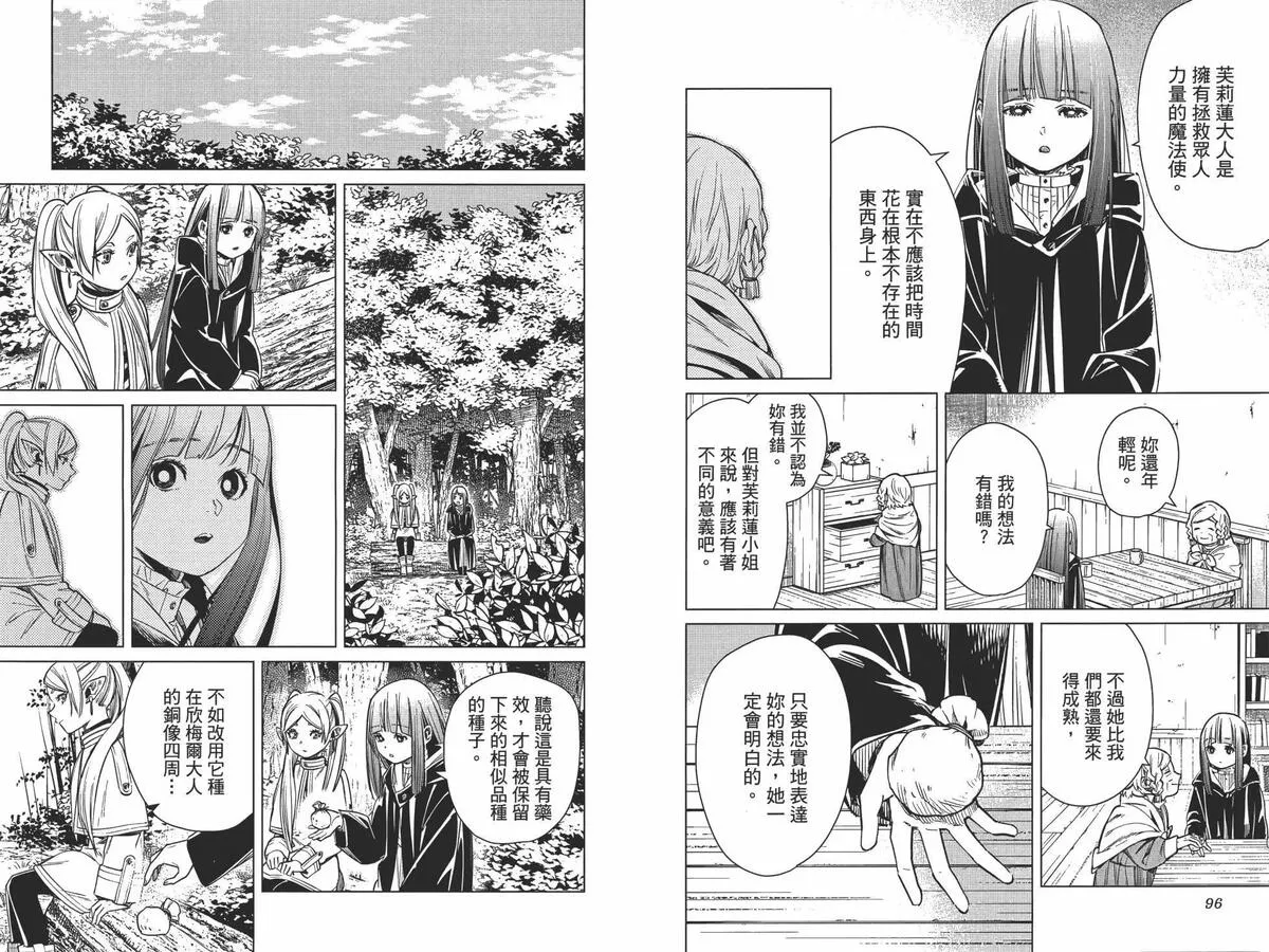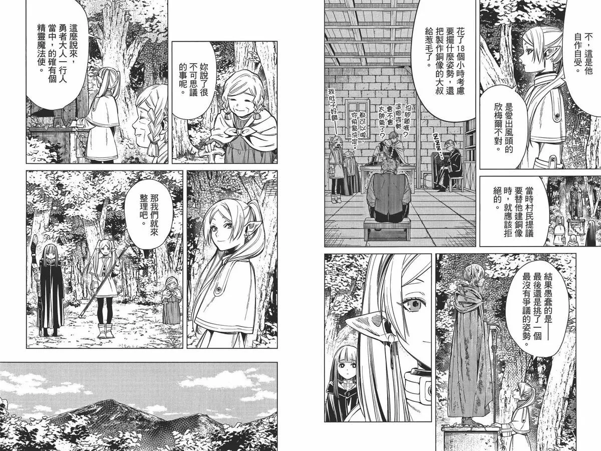 打倒魔王“之后”的勇者一行人中,身为魔法使的芙莉莲同时是一个精灵,她和另外三人有着不一样的地方。她对于生活在“之后”的世界、感受到的事情有着不一样的看法……