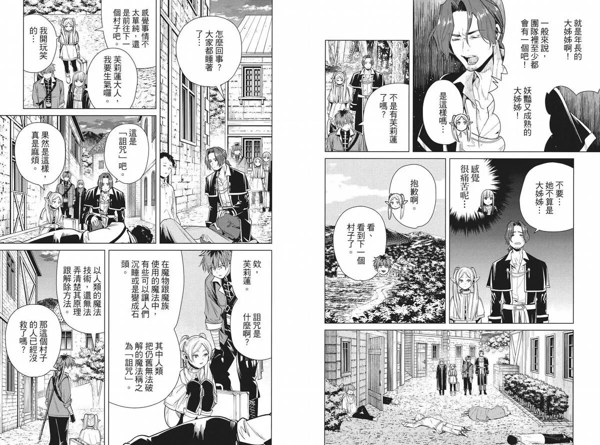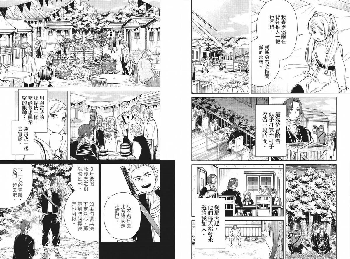 打倒魔王“之后”的勇者一行人中,身为魔法使的芙莉莲同时是一个精灵,她和另外三人有着不一样的地方。她对于生活在“之后”的世界、感受到的事情有着不一样的看法……