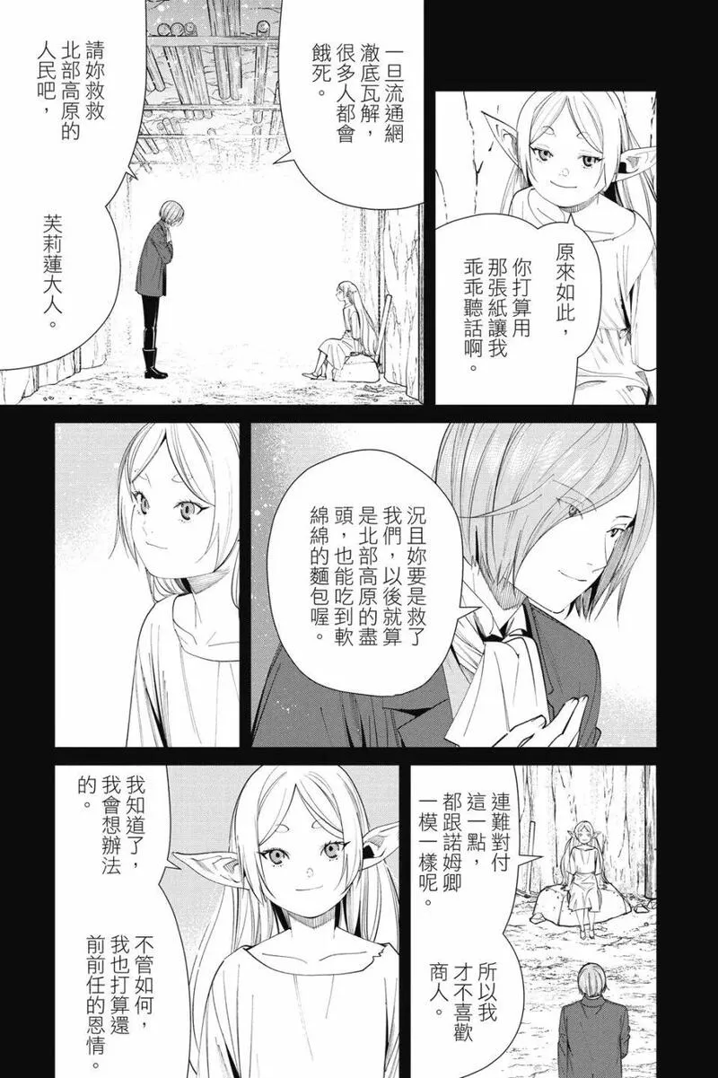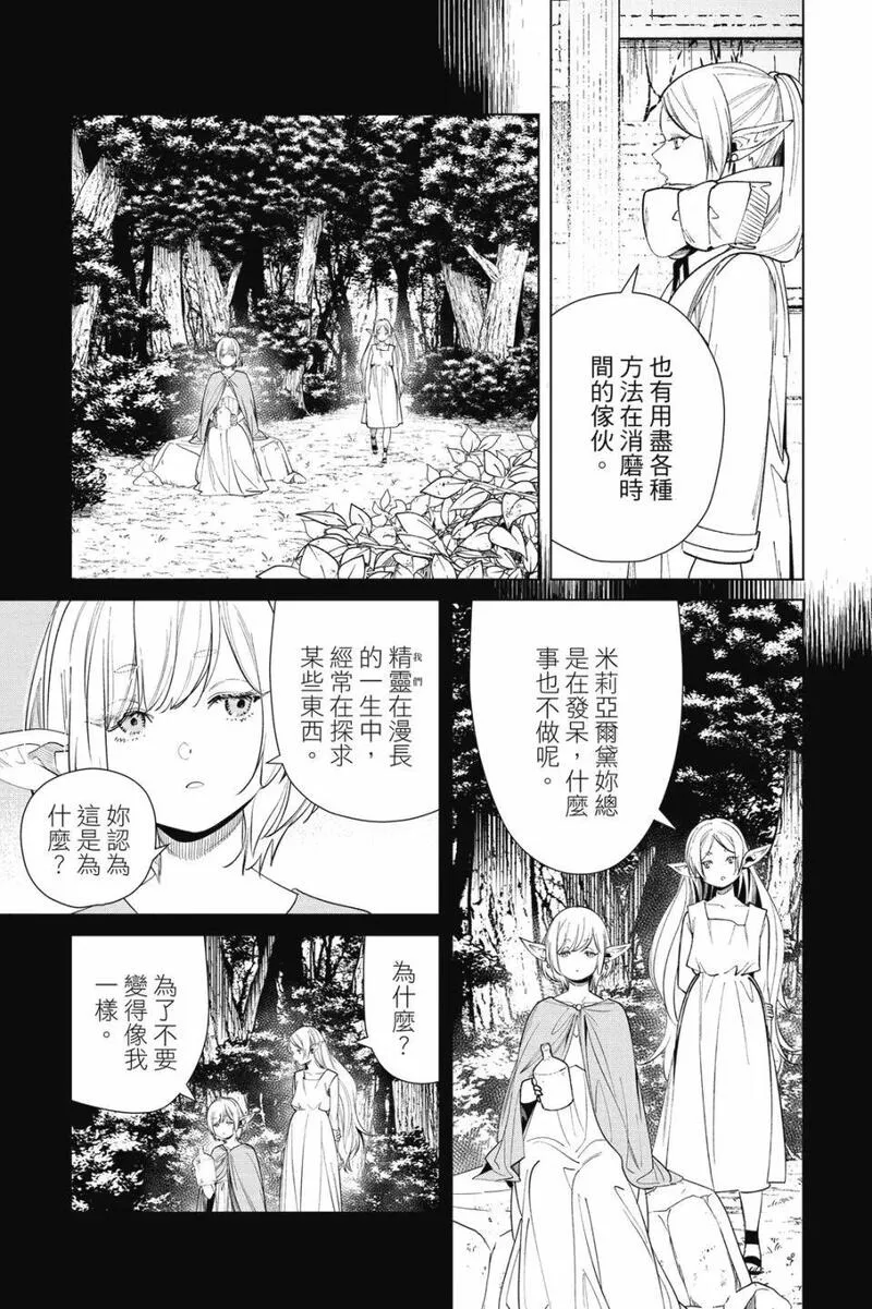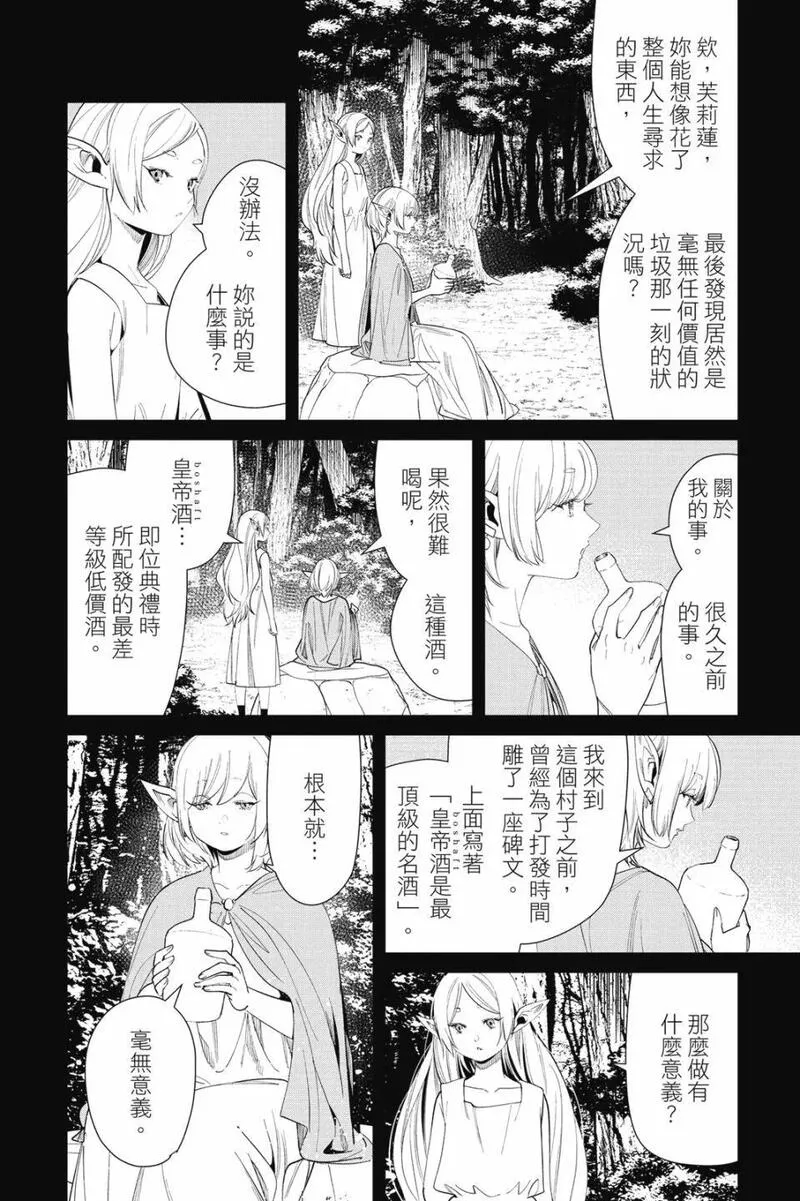 打倒魔王“之后”的勇者一行人中,身为魔法使的芙莉莲同时是一个精灵,她和另外三人有着不一样的地方。她对于生活在“之后”的世界、感受到的事情有着不一样的看法……