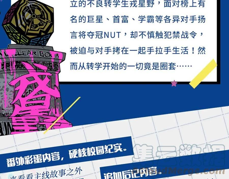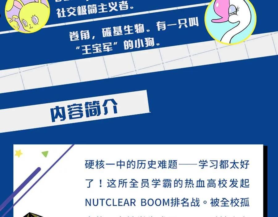 硬核一中的历史难题——学习都太好了!这所全员学霸的热血高校发起NUTCLEARBOOM排名战。被全校孤立的不良转学生戎星野,面对榜上有名的巨星、首富、女装大佬等各异对手扬言将夺冠NUT,却不慎触犯禁战令,被迫与对手拷在一起手拉手生活!然而从转学开始的一切竟是圈套…