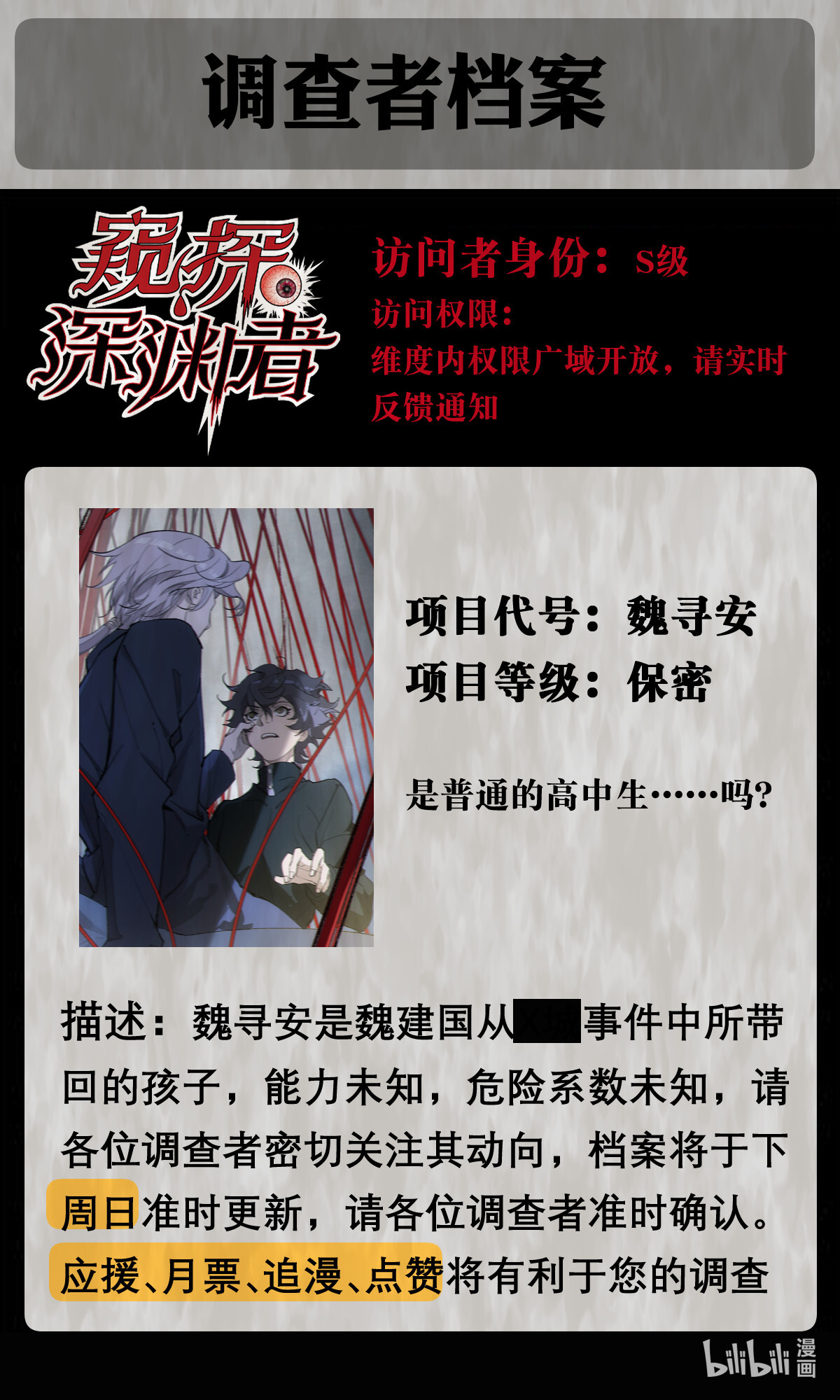简介一场邪恶的仪式,一个城市的神隐,一切真相都被掩埋在黑暗之中,唯有一个婴儿幸存,15年后,异象再生,命运纠葛的下一代再次踏上了寻觅真相的旅途,而来自深渊的注视,也许从来都未曾离开过