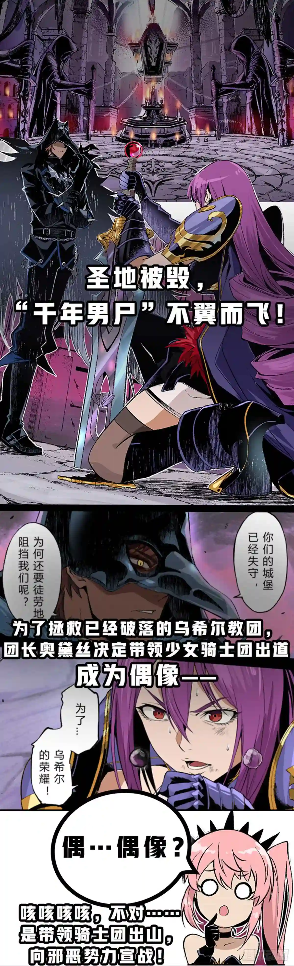 DNF首部官方连载漫画。 流放者山脉中,卡赞尸体被夺,暗殿骑士奥黛丝率领骑士团的少女们踏上复仇之旅。 使徒奥兹玛复活在即,圣职者教团与冒险家们轮番登场,且看阿拉德勇士续写英雄传说!