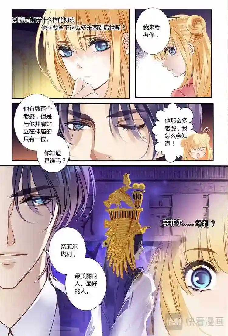 一只蛇形黄金镯蕴藏的神秘力量,将英国少女艾薇卷入古埃及时空。在隐藏着宫廷政变气息的夜宴上,她与法老王之子比非图相遇。美丽聪慧的艾薇,让比非图为之倾心,更欲立她为妃!化名奈菲尔塔利的少女,却无法坚定自己的内心,选择重回现代!当黄金镯再次开启时空时,艾薇发现比非图竟是著名法老王拉美西斯二世,而历史因为她的选择被狠狠改变……