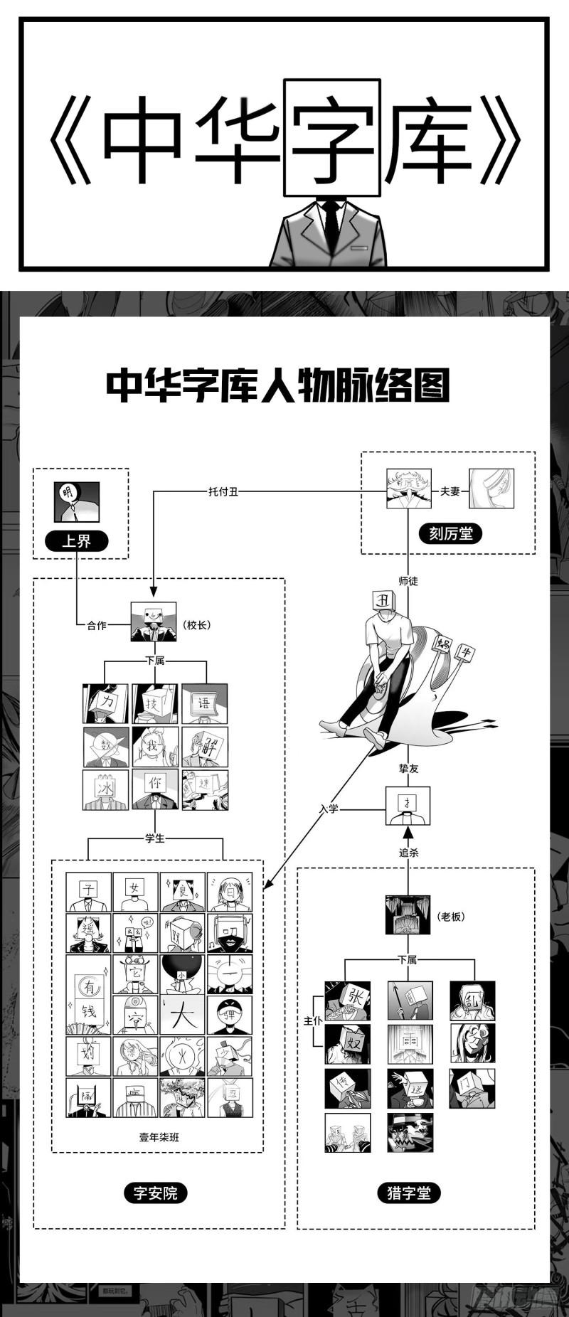 在中华字库的世界里,国民皆为汉字人。汉字人遵从汉字原意生活,偏旁部首不能独立存活。汉字学院“字安院”新入学的学生【丑】因丑字的特性,经常受欺负,没有朋友。在参加入学典礼时,【丑】遇到逃避追杀的【提手旁】,两人从此联手字安院对抗神秘组织“猎字堂”。化身为【扭】的两人,将展开冒险,探索汉字的意义。