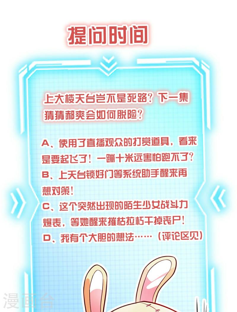 三流主播郝爽在直播卖货整活儿时,被模特小妹拍晕,醒来发现自己被“系统”绑定带到丧尸横行的末日世界,身边还有一只自称系统女神的“羊驼”小姐,而接下来自己则需要在危机四伏的末日世界依靠直播完成系统任务,只有最终阻止末日世界的毁灭进程才能回到原来的地球……