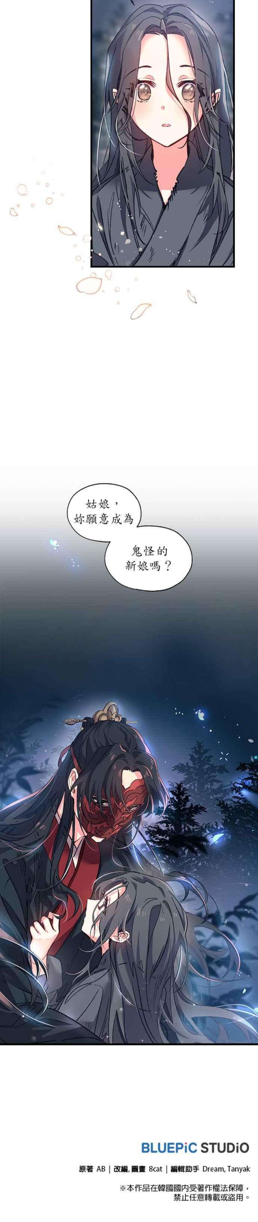 简介「妳愿意当鬼怪的新娘吗?」顺王朝的帝都仰安有个传闻,城里某间药房有一位能用歌声让人在梦中愿望成真的巫女。为了证实这个传闻,顺王朝亲王──思轩英,隐瞒自身身分亲自去见了这位巫女,然而在听完巫女的歌声后,彷彿得了相思病一般,一直不断找她…。一位只能戴着鬼怪面具隐藏自己真实身分的男子、一位在孤寂的山中等待死亡日度一日的女子,相遇后发现真正理解自己的只有彼此,一则关于男女爱恋情愁的故事。【本作品为官方正式授权之15岁版本,请读者们多多支持。】