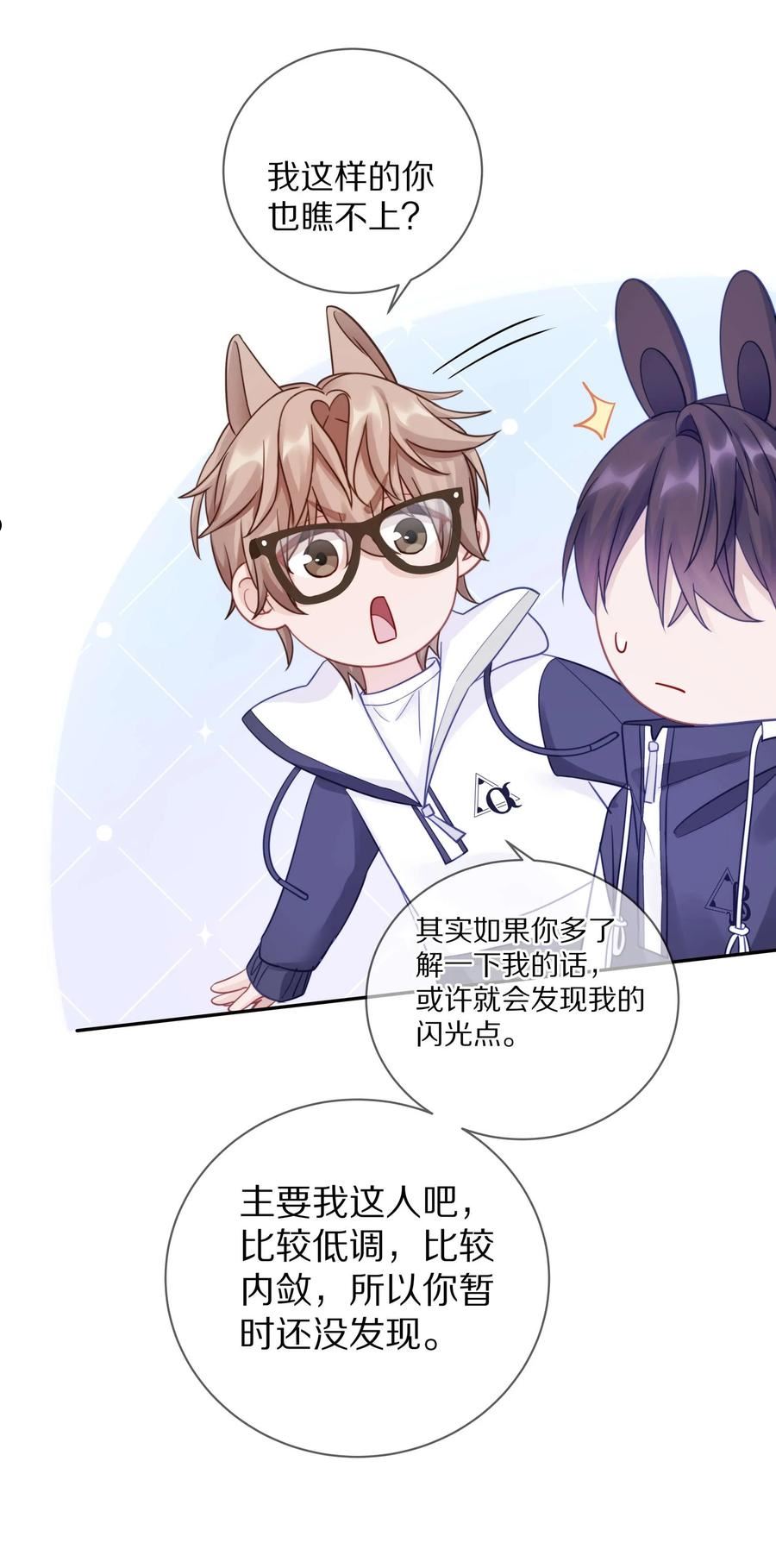 简介某市有这么两位校霸:一位:不社交不早恋,沉迷学习日渐孤僻另一位:我的对象必须身娇体软乖巧听话某天,这两位校霸相遇了。蒋尧:兔崽子别不识好歹。蒋尧:兔崽子还挺可爱。蒋尧:兔崽子……尹澈:滚。阳光大灰狼vs孤僻小兔子蒋尧X尹澈