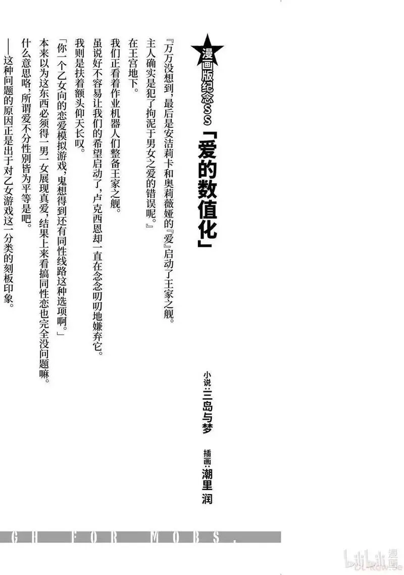 乙女游戏世界对路人角色很不友好漫画,从现代日本转生过去的世界——居然是女尊男卑的世界!?「利欧」作为男爵家的三男迎来第二次人生,但是没想到那居然是自己所知道的乙女游戏世界。那是大地浮在天空上,飞船在天空中来往的幻想世界。那是个有着名叫冒险者的存在,一切都令人兴奋不已的异世界。但是,利欧无法法好好去享受。因为那是个女尊男卑很严重的世界,贵族的男性都要为了结婚而恶战苦斗的世界。邪门歪道的自称路人角色的男主角到处捣乱的游戏系异世界幻想故事