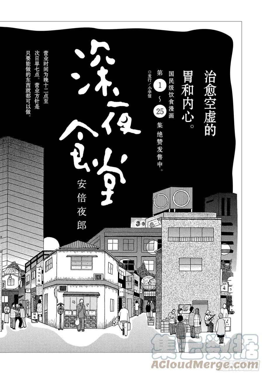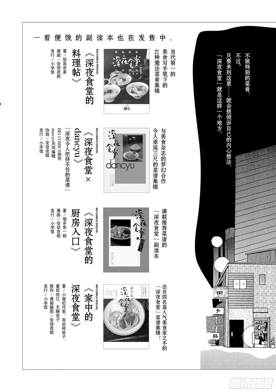 《深夜食堂》讲述了发生在一个深夜营业的小餐馆里的故事。这里的菜单只有猪肉酱汤套餐一种,但是老板可以根据客人的要求利用现有食材做出各种料理。这里没有大鱼大肉,全是简单的家常小菜;这里没有大悲大喜,却是地道人间烟火的气息。正版单行本由湖南文艺出版社发行。