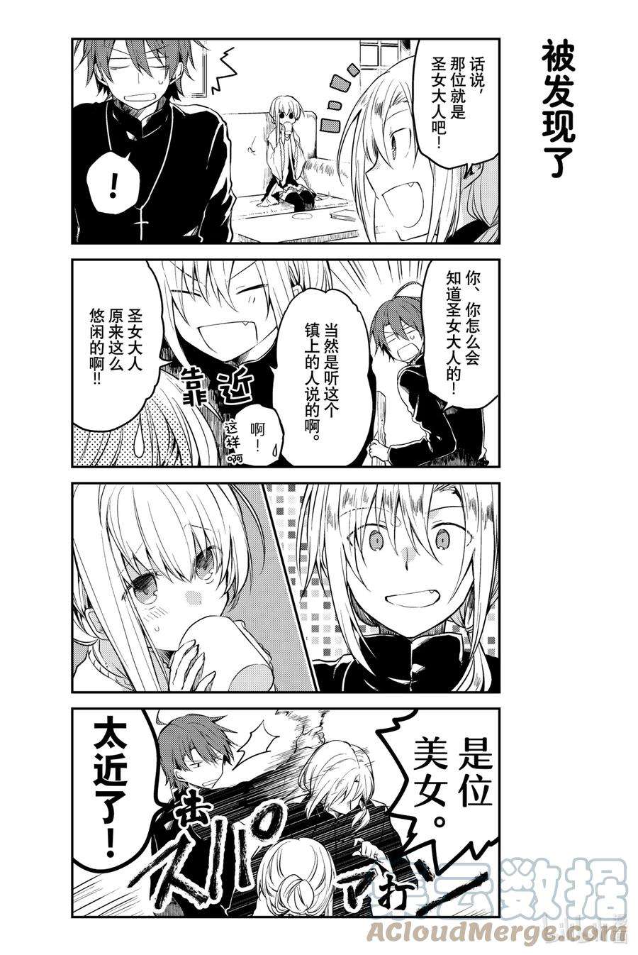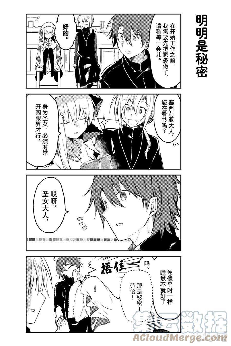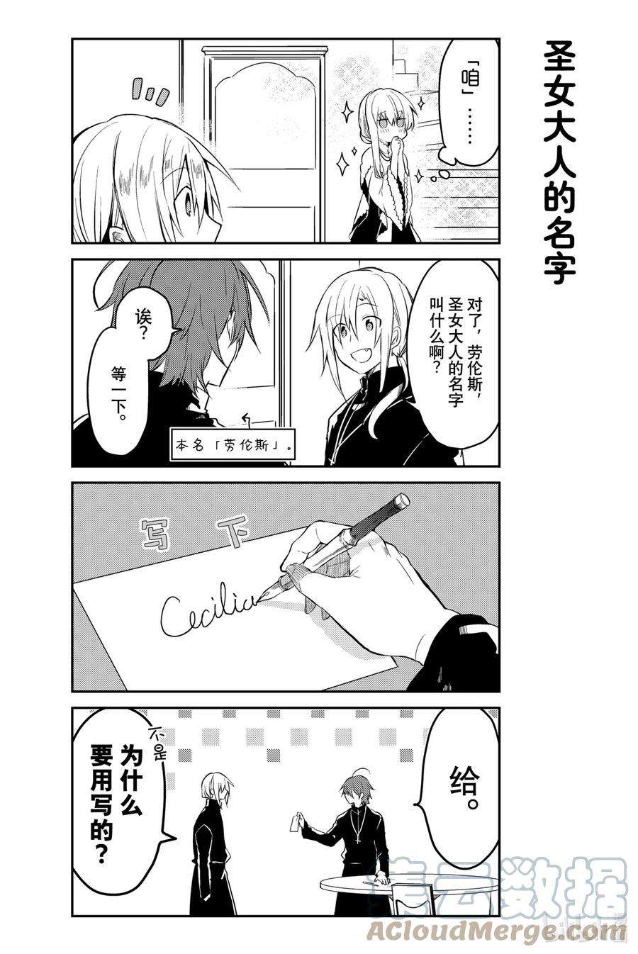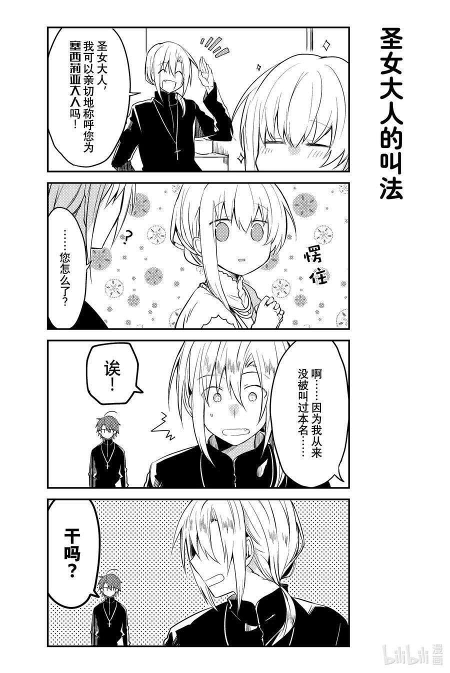 白圣女与黑牧师漫画 ,为了照顾一个人什么也不做、无所事事的圣女·塞西莉娅,性格一板一眼的牧师·劳伦斯不得不时刻忙碌着…… 完全相反的两个人彼此尊敬着对方,之间偶尔也会产生不错的气氛……? 投稿在pixiv上的,我行我素圣女×费力劳心牧师的同居纯爱喜剧!