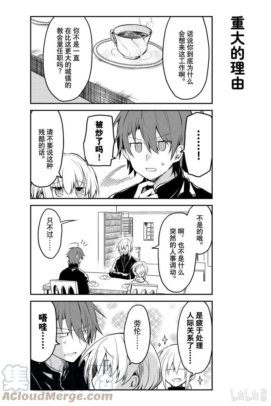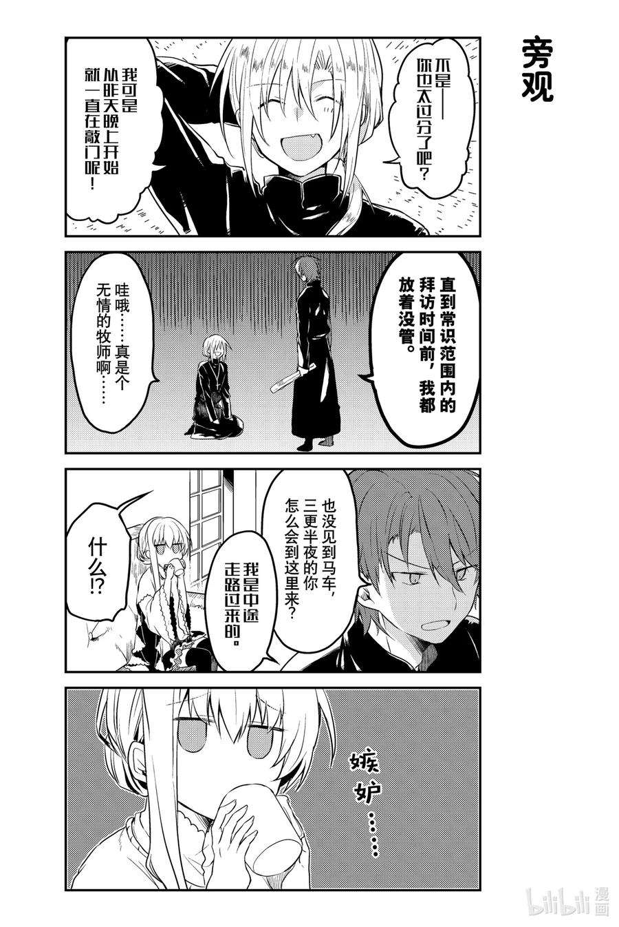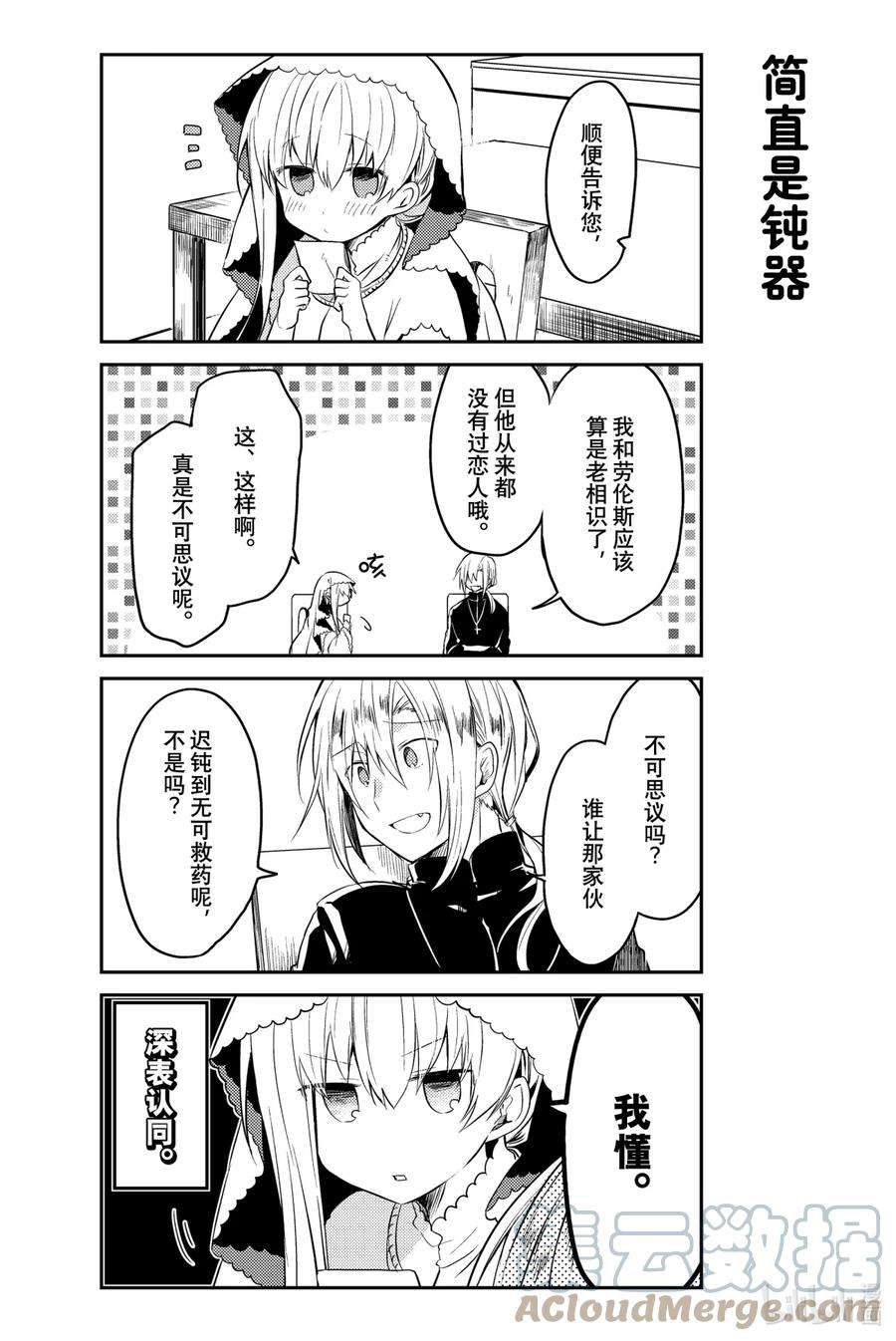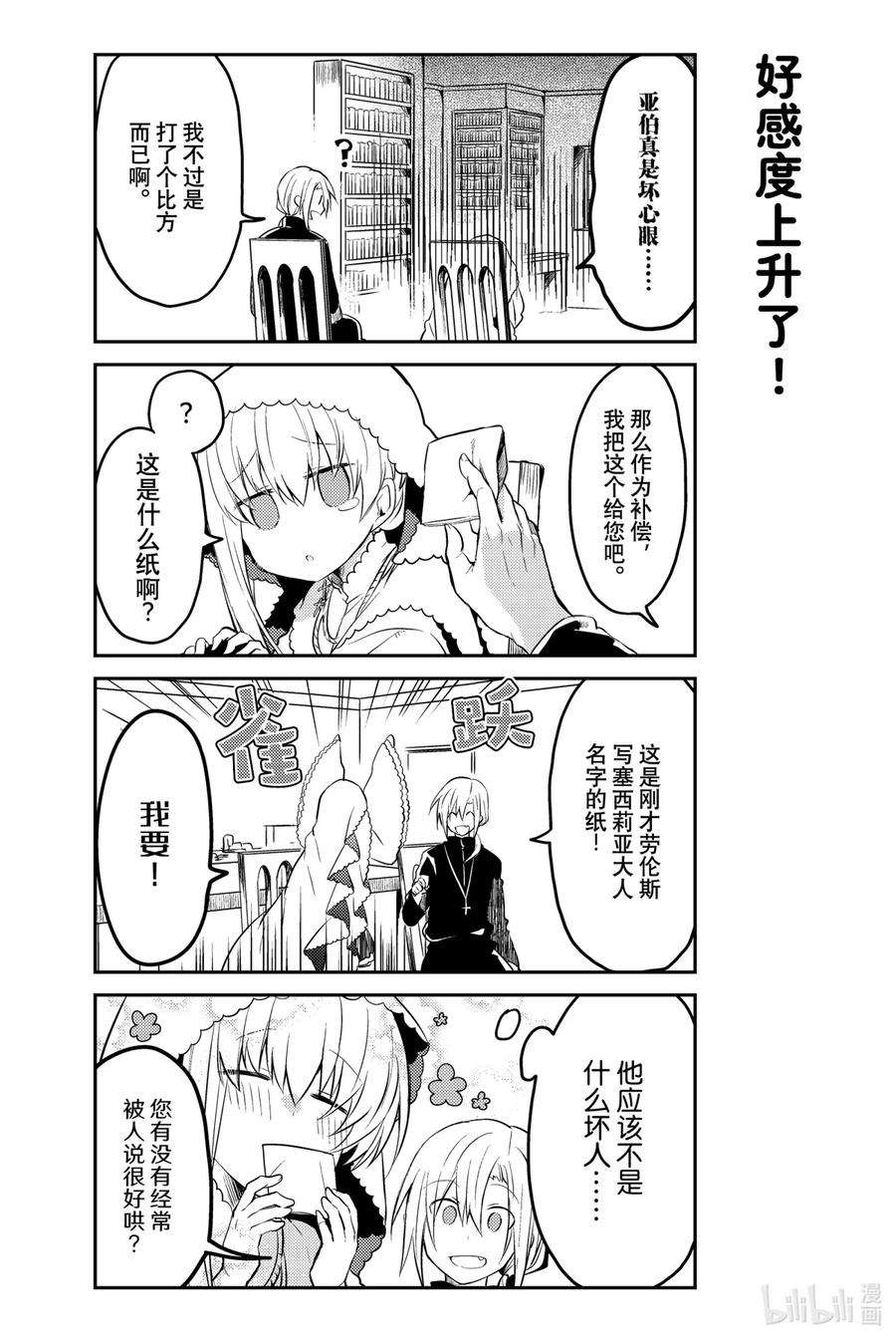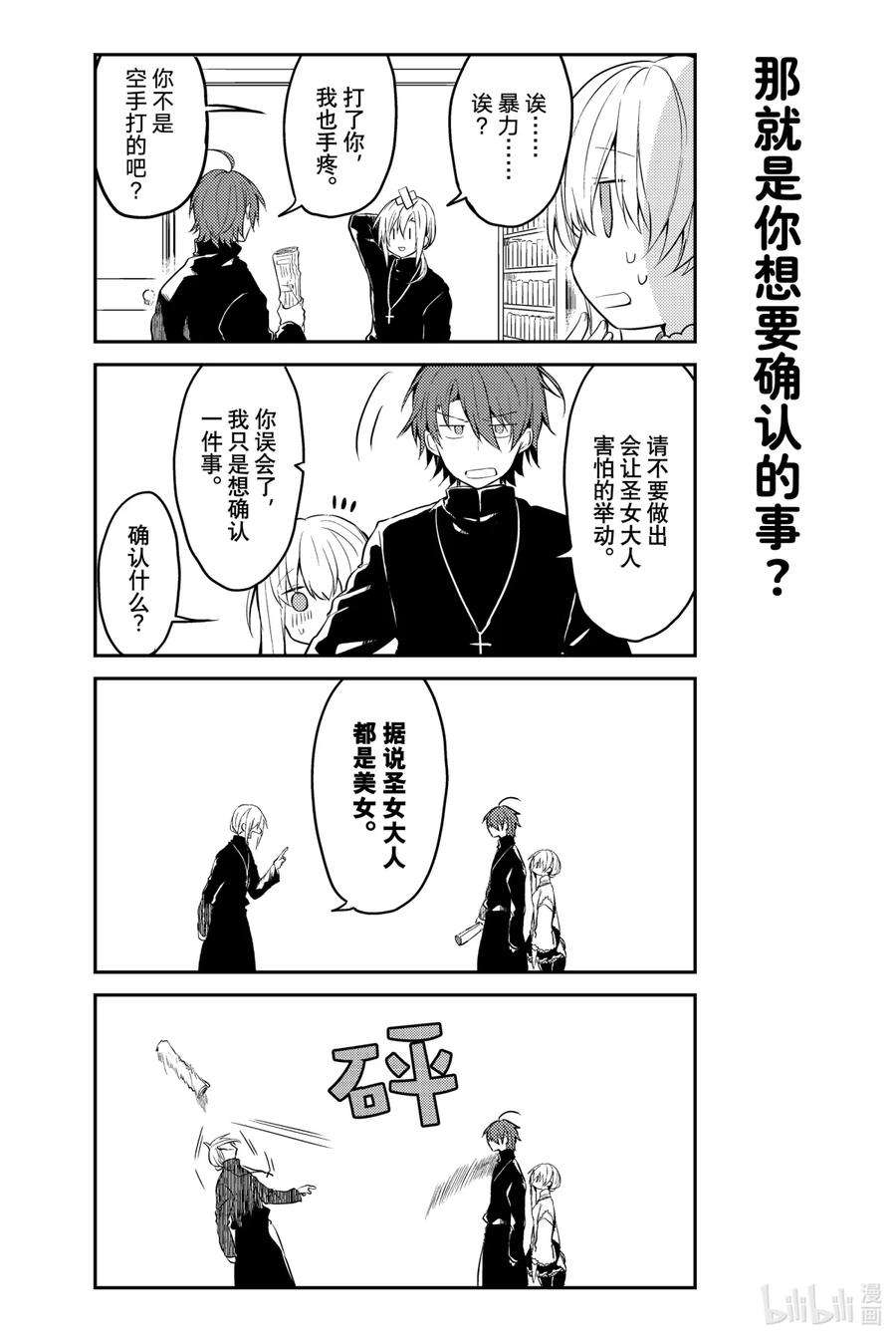 白圣女与黑牧师漫画 ,为了照顾一个人什么也不做、无所事事的圣女·塞西莉娅,性格一板一眼的牧师·劳伦斯不得不时刻忙碌着…… 完全相反的两个人彼此尊敬着对方,之间偶尔也会产生不错的气氛……? 投稿在pixiv上的,我行我素圣女×费力劳心牧师的同居纯爱喜剧!