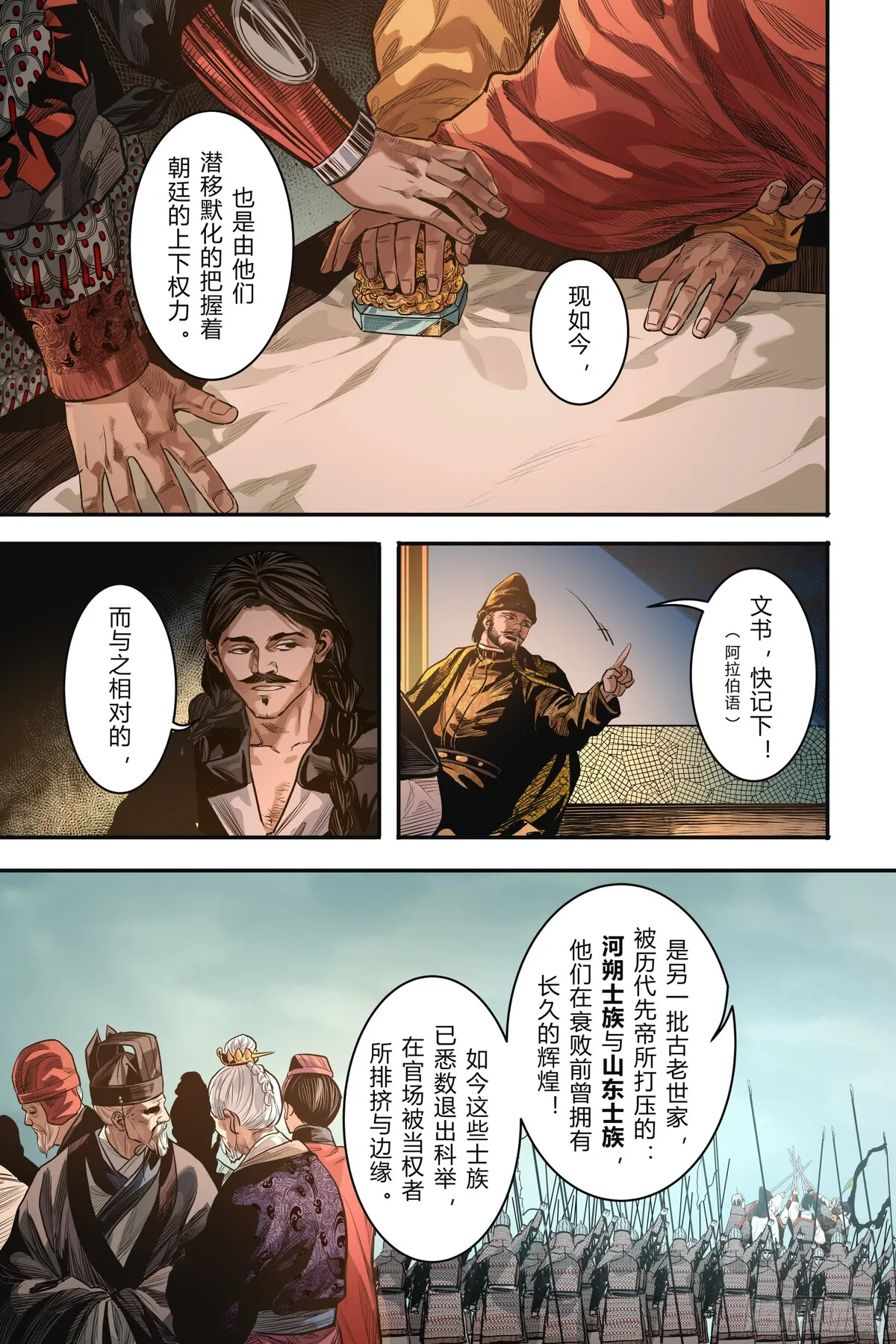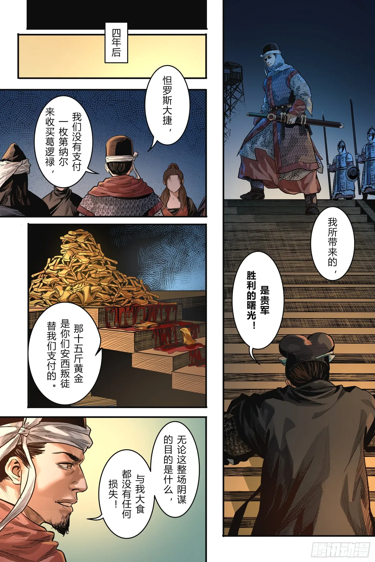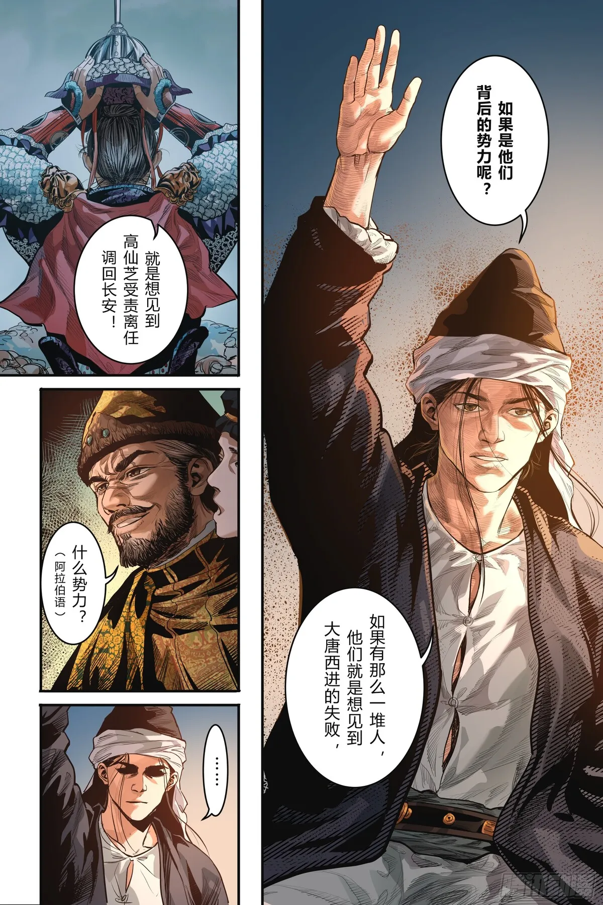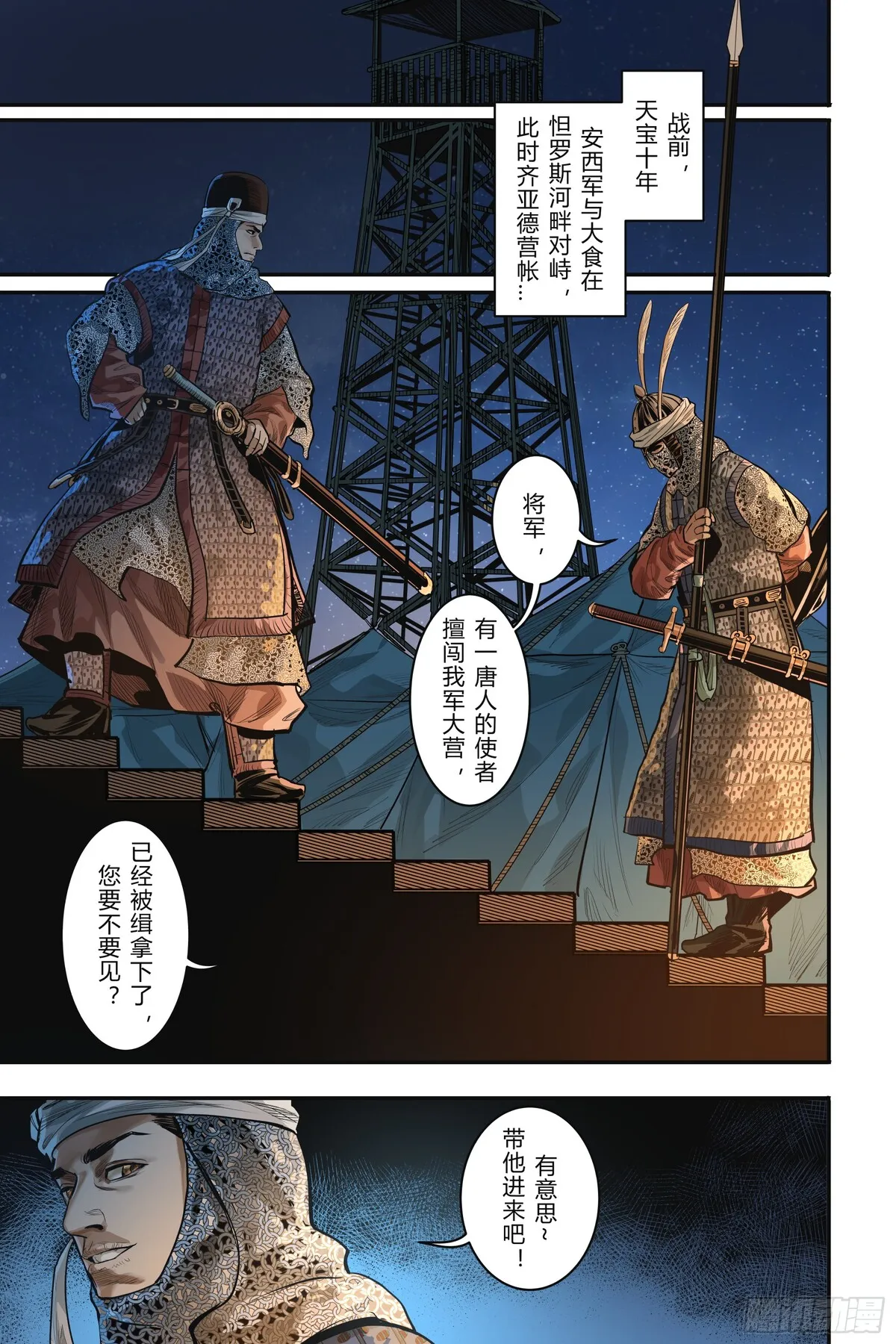 曾几何时,歌舞升平的大唐盛世与一千零一夜的世界仅仅一墙之隔,我们共同仰望着头顶那片群星闪烁的中古夜空。天宝十一年,怛罗斯之战,两位大唐安西边军少年背对背出发……向西是天方夜谭描述的瑰丽帝国,向东是开天盛世繁华的尽头。踏着盐与沙的道路,伴着爱与恨的歌谣,沐浴血与火的洗礼,迎来时代与命运的完结。