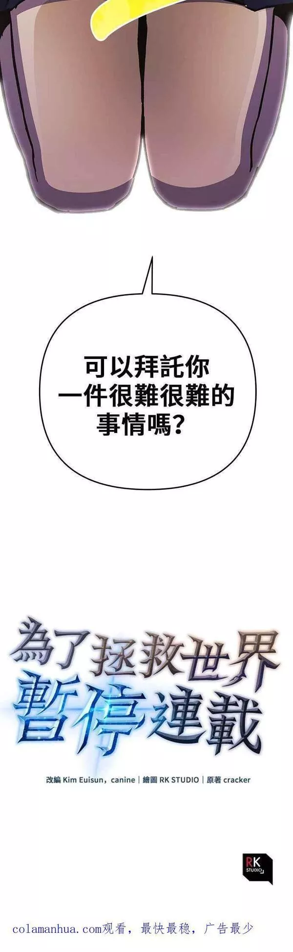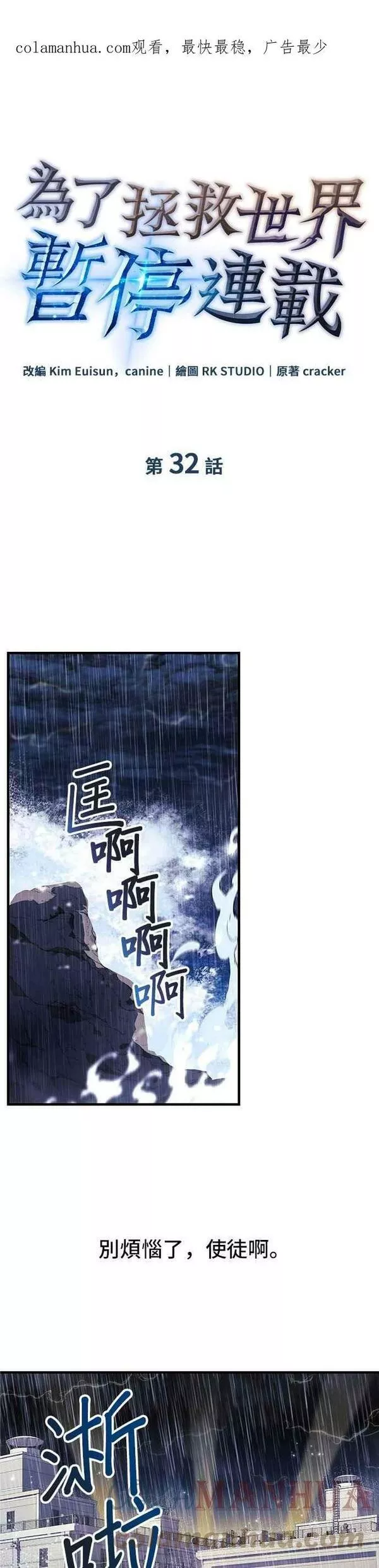 因特殊原因无法连载又名为了拯救世界停止更新\,为了拯救世界暂时停更,类型为魔幻|冒险的高人气漫画,漫画简介:我是一个三流的网络小说作家,名叫柳一信。我的名字在韩语中可能是“唯一的上帝”,但不要开始向我祈祷。我其实不是神,只是一个名字。 虽然在这个世界上只有猎人受到良好的对待,但这并不意味着他们都是平等的。一...
