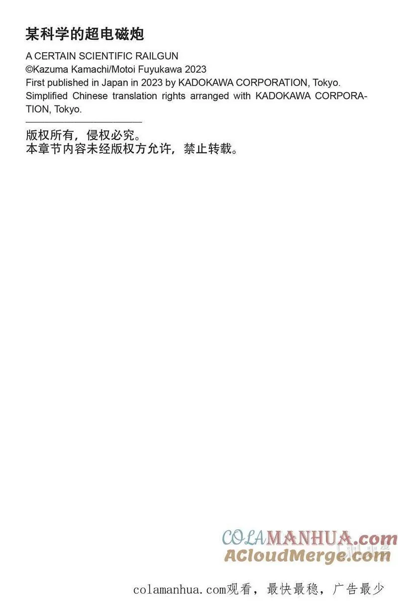 科学超电磁炮又名魔法禁书目录外传某科学的超电磁炮\,魔法禁书目录外传 科学超电磁炮,类型为科幻|机战的高人气漫画,漫画简介:有230万人口,其中八成人口为学生的「学园都市」。是比其他地区科技更为先进,并从事「超能力开发」的特殊地区。而整座学园都市中仅有七人的等级5超能力者之一御?美琴,由于她的能力与个性使然,因而被卷入了学...