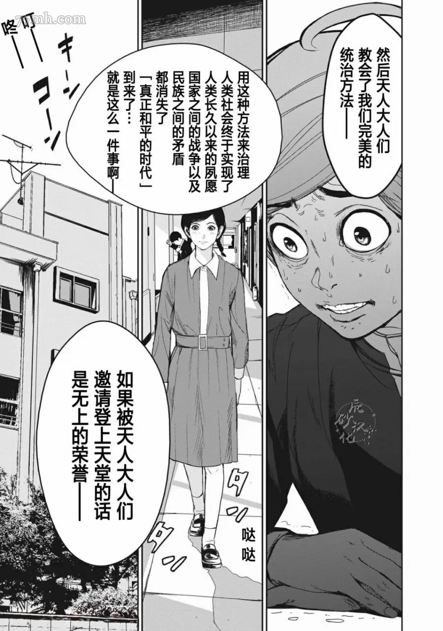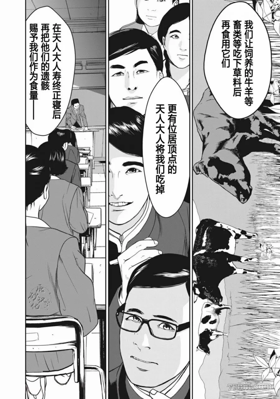 食粮人类RE又名 ,类型为恐怖惊悚|推理悬疑的高人气漫画,漫画简介:家畜食用植物,人类食用家畜,而更上一层的“天人”,统治人类、整合人类、食用人类。人类放下战争,逐渐转变成天人所喜爱的乖巧“家畜”。 这天,天泽所暗恋的女孩——莲沼柚,被测出“特等”口感,即将成为天人的食粮。同学们怀着祝福的心,切下小指,准备让柚食用下去,化为美好的回忆…… 在这和平却又极端疯狂的世界,天泽大辉——是个异类。