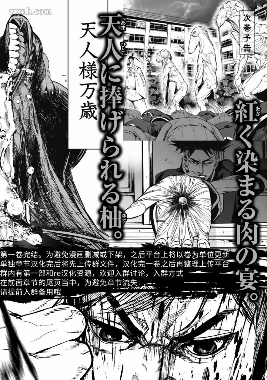 食粮人类RE又名 ,类型为恐怖惊悚|推理悬疑的高人气漫画,漫画简介:家畜食用植物,人类食用家畜,而更上一层的“天人”,统治人类、整合人类、食用人类。人类放下战争,逐渐转变成天人所喜爱的乖巧“家畜”。 这天,天泽所暗恋的女孩——莲沼柚,被测出“特等”口感,即将成为天人的食粮。同学们怀着祝福的心,切下小指,准备让柚食用下去,化为美好的回忆…… 在这和平却又极端疯狂的世界,天泽大辉——是个异类。