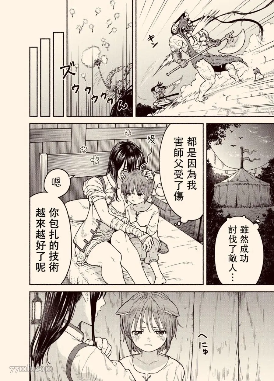 女骑士与兽耳正太又名跨越种族的师徒,类型为恋爱生活|魔法奇幻的高人气漫画,漫画简介:又名:跨越种族的师徒 魔物蔓延杀机四伏的异世界。女骑士奥莉维亚和弟子兽人诺亚一起生活。被坚强地活着的2人的羁绊所治愈,令人心动的师徒成长冒险故事。