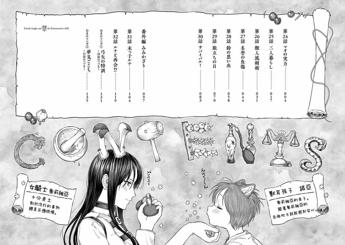 女骑士与兽耳正太又名跨越种族的师徒,类型为恋爱生活|魔法奇幻的高人气漫画,漫画简介:又名:跨越种族的师徒 魔物蔓延杀机四伏的异世界。女骑士奥莉维亚和弟子兽人诺亚一起生活。被坚强地活着的2人的羁绊所治愈,令人心动的师徒成长冒险故事。