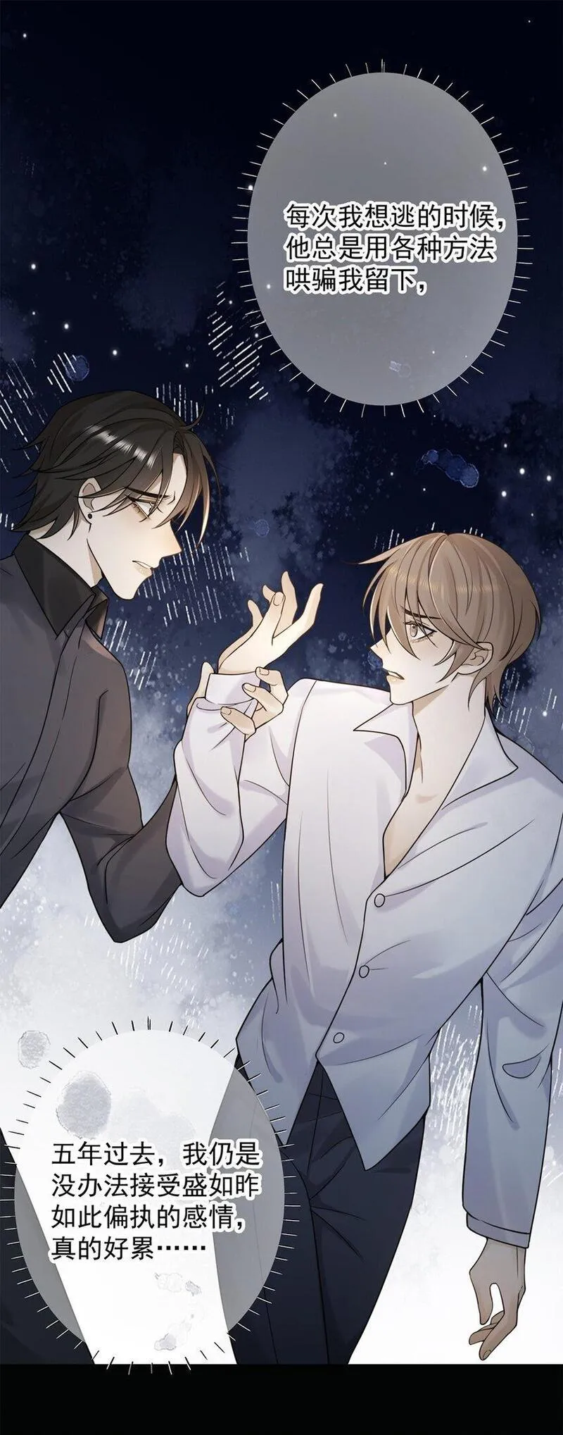过时契合又名,类型为其它的高人气漫画,漫画简介:一场车祸,令关了陈朝五年的盛如昨终于放手,就在陈朝以为可以迎接新生活的时候,又被盛如昨用各种借口绑回去。同时,拯救者蒋又霖的出现、五年前失去的记忆、不存在的弟弟……接踵而来的真相令陈朝发现,当年的事情...