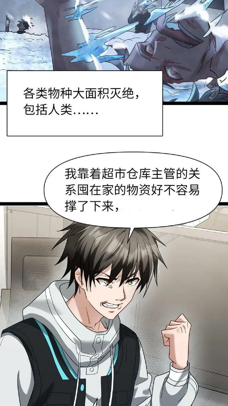 全球冰封:我打造了末日安全屋又名,类型为科幻的高人气漫画,漫画简介:【日更】全球进入冰河时代,95\%的人类全部丧生!上一世,张奕因为心地善良,结果被自己帮助过的人杀死了。这一世,张奕重生归来,觉醒空间异能,疯狂囤积物资!寒冰末世、划地为王!誓要将过去的痛苦百倍奉还!