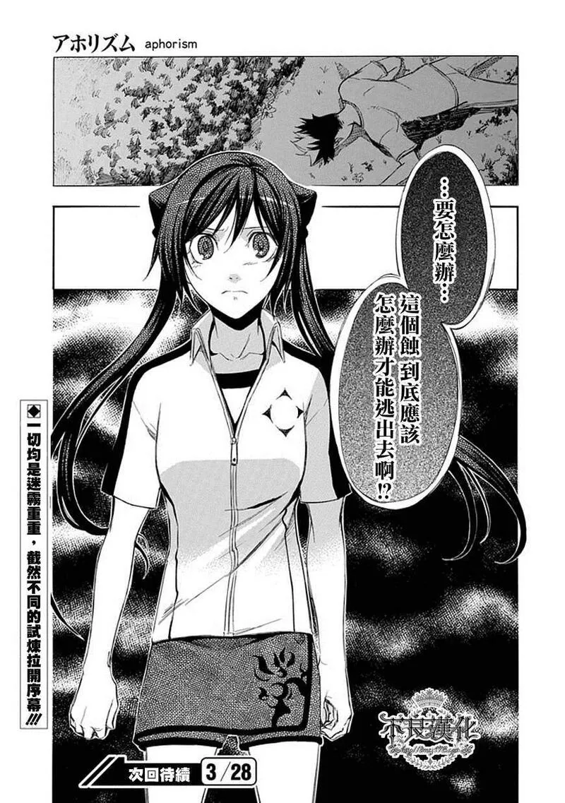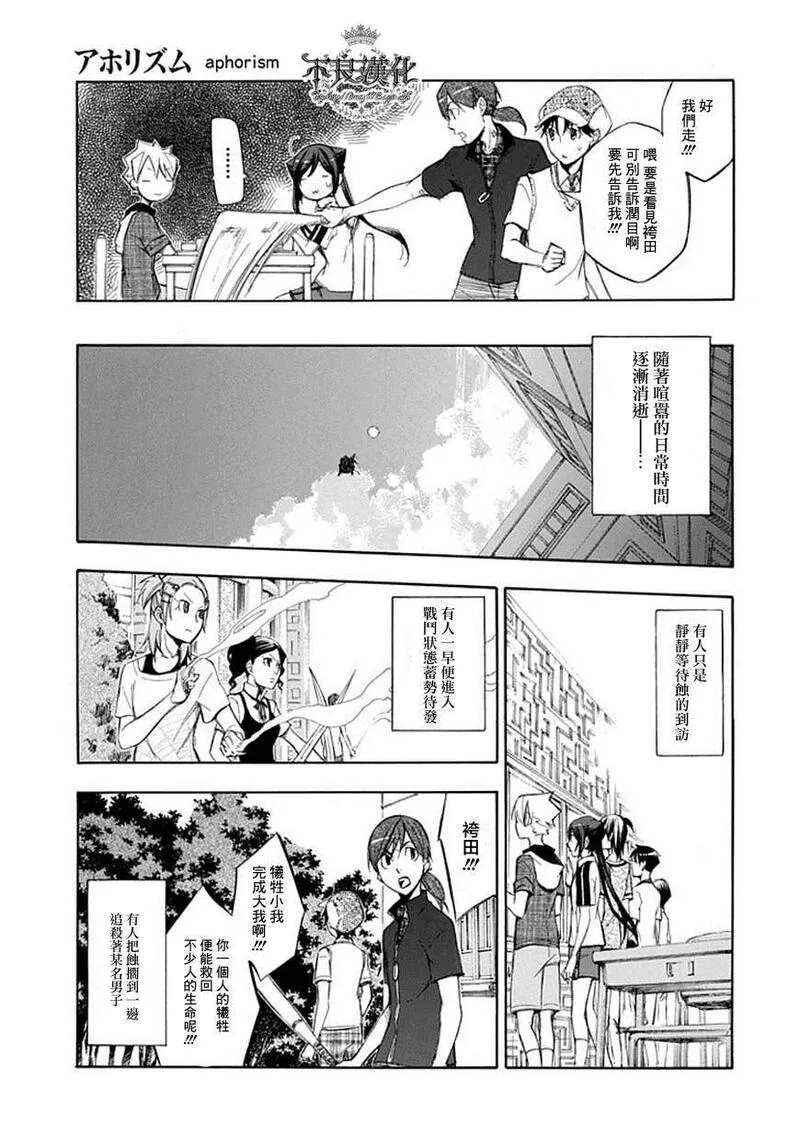 格言又名杀戮箴言aphorism aphorism/格言 格言aphorism,类型为热血机战|魔法奇幻的高人气漫画,漫画简介:又名:杀戮箴言aphorism aphorism/格言 格言aphorism 唯有能看见空中岛屿的学生才能入学, 全员住宿制的男女合校「楢鹿高级中学」。 只要能顺利毕业,前途将一片光明。 然而,怀抱梦想与希望的学生们将面对的 却是「神蚀」! 这是个现实被一点一滴残酷吞蚀的绝望考验… 只有挺身迎战、绝不妥协之人才能存活的神之试练!