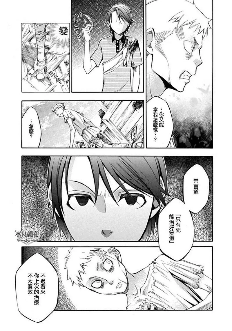 半只脚踏入黑道世界的18岁少年志藤勇, 因回想起小时候,少女对『只是打开塑料瓶瓶盖』这种小事表示感谢的笑容而试图逃离那个地方,可是,追他而来的成员却突然变成丑陋的怪物。濒死的他面临「某种选择」。<是变成怪物战斗、还是死>--渴望「生」之人啊,面对「死亡」吧。打、打、打、打个不停的鲜血淋淋的战斗动作!!