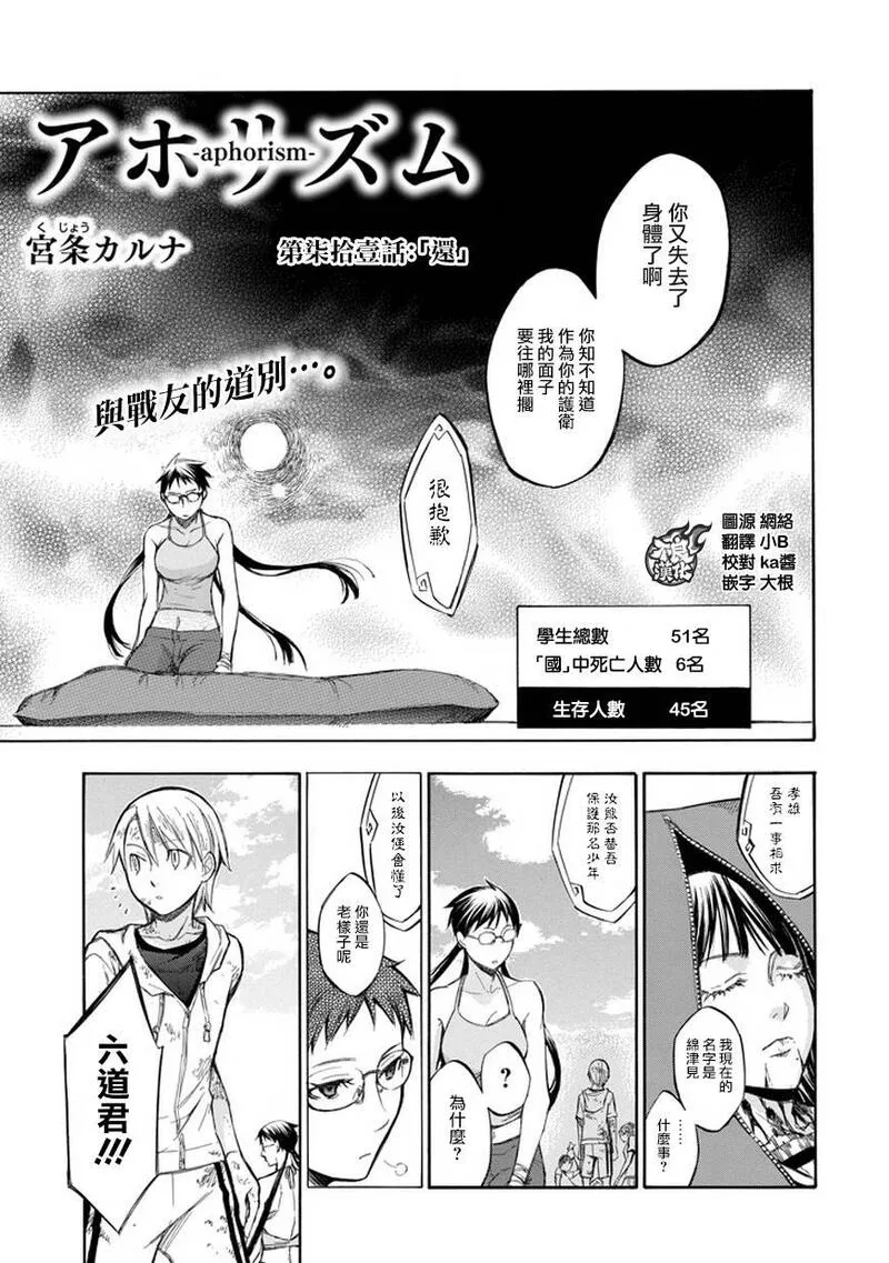 格言又名杀戮箴言aphorism aphorism/格言 格言aphorism,类型为热血机战|魔法奇幻的高人气漫画,漫画简介:又名:杀戮箴言aphorism aphorism/格言 格言aphorism 唯有能看见空中岛屿的学生才能入学, 全员住宿制的男女合校「楢鹿高级中学」。 只要能顺利毕业,前途将一片光明。 然而,怀抱梦想与希望的学生们将面对的 却是「神蚀」! 这是个现实被一点一滴残酷吞蚀的绝望考验… 只有挺身迎战、绝不妥协之人才能存活的神之试练!