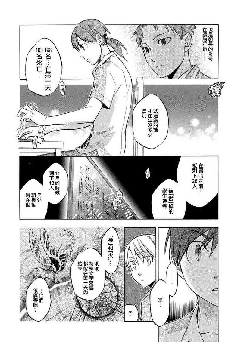 格言又名杀戮箴言aphorism aphorism/格言 格言aphorism,类型为热血机战|魔法奇幻的高人气漫画,漫画简介:又名:杀戮箴言aphorism aphorism/格言 格言aphorism 唯有能看见空中岛屿的学生才能入学, 全员住宿制的男女合校「楢鹿高级中学」。 只要能顺利毕业,前途将一片光明。 然而,怀抱梦想与希望的学生们将面对的 却是「神蚀」! 这是个现实被一点一滴残酷吞蚀的绝望考验… 只有挺身迎战、绝不妥协之人才能存活的神之试练!