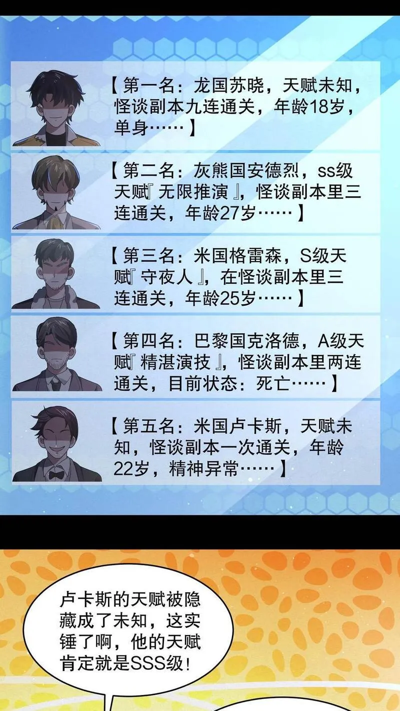 规则怪谈:开局化身逼兜战神又名,类型为直播|悬疑灵异的高人气漫画,漫画简介:【日更】苏晓被拉入规则怪谈闯关,所有人都不看好他,却没想到他直接抽中SSS级天赋,一通骚操作猛如虎!规则不让干什么他偏干什么,就突出一个全身反骨!诡异出现他上来就是两逼兜,打得对方怀疑诡生,甚至还收服...