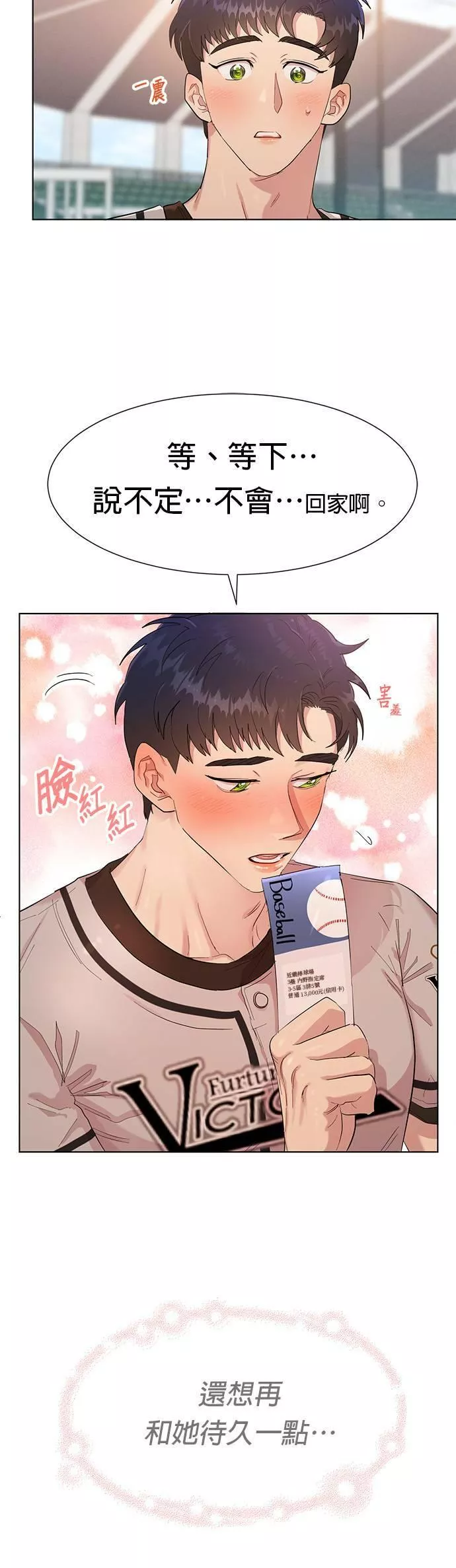 拯救万年垫底棒球队又名,类型为爱情的高人气漫画,漫画简介:【建议15岁以上阅读】 只要和他接吻,就会轰出全垒打,要是XX的话就会...赢球?!万年垫底棒球队「未来胜利队」的球迷申承雅对他们失望透顶,在下定决心要脱粉的那一刻,一时冲动地和坐在隔壁的球迷崔尊接吻...