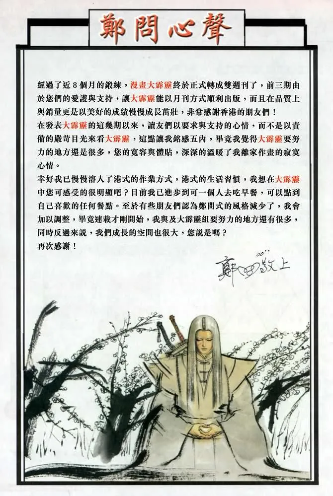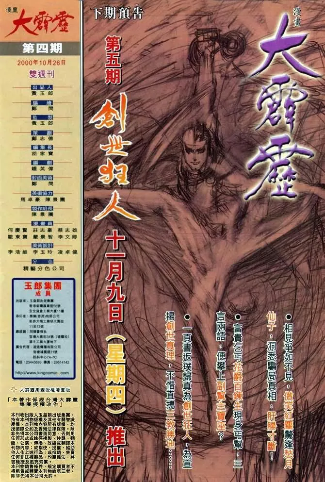 大霹雳又名 ,类型为武侠经典的高人气漫画,漫画简介:大霹雳是一个神话故事\,关于人、神与魔或正与邪相争的桥段。话说从前有一只叫魔魁的混世魔王\,同儒、道、佛三教正道很不妥\,于是三对一打死了魔\,但魔精神不死\,再次“投胎转世”……在新时代中\,儒、道、佛三教的接班人相继出现──剑君十二恨、乱世狂刀和叶小钗\,要诛杀魔魁\,遂展开连场斗争……