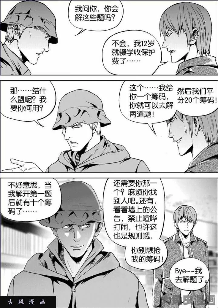 迷域行者又名,类型为热血|悬疑|推理的高人气漫画,漫画简介:从梦中醒来的宁远,发现自己被关入死牢,除了不断靠近的钉板墙和同囚的女性,他一无所知。好不容易逃离死牢的他发现自己被送到了迷域之中的杀戮游戏中,要如何才能逃离迷域,逃离这个死亡游戏?