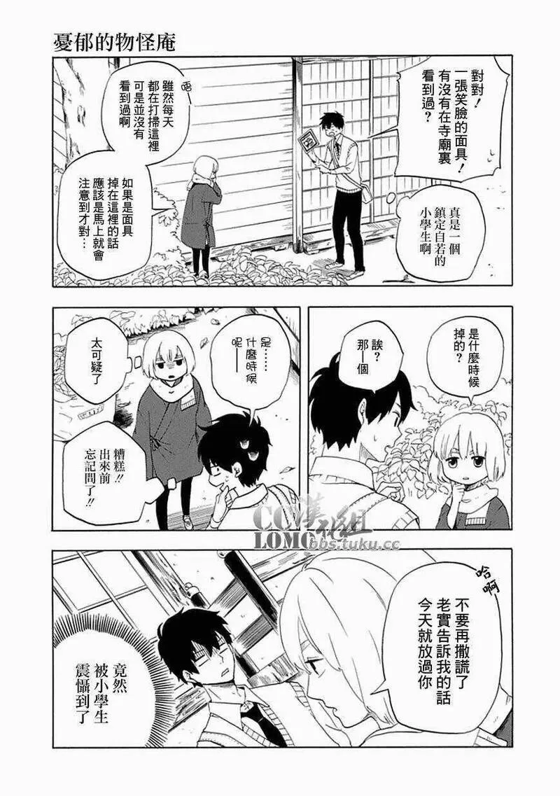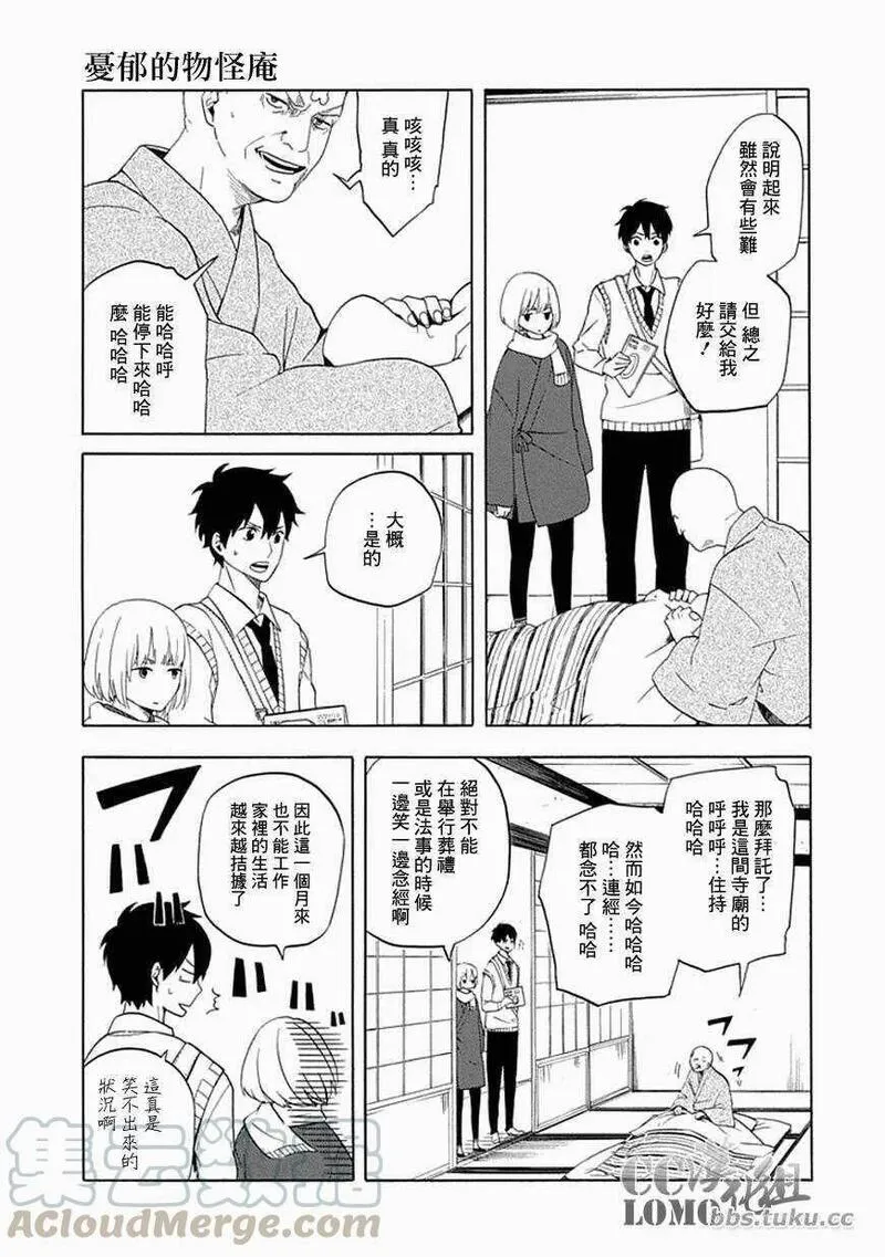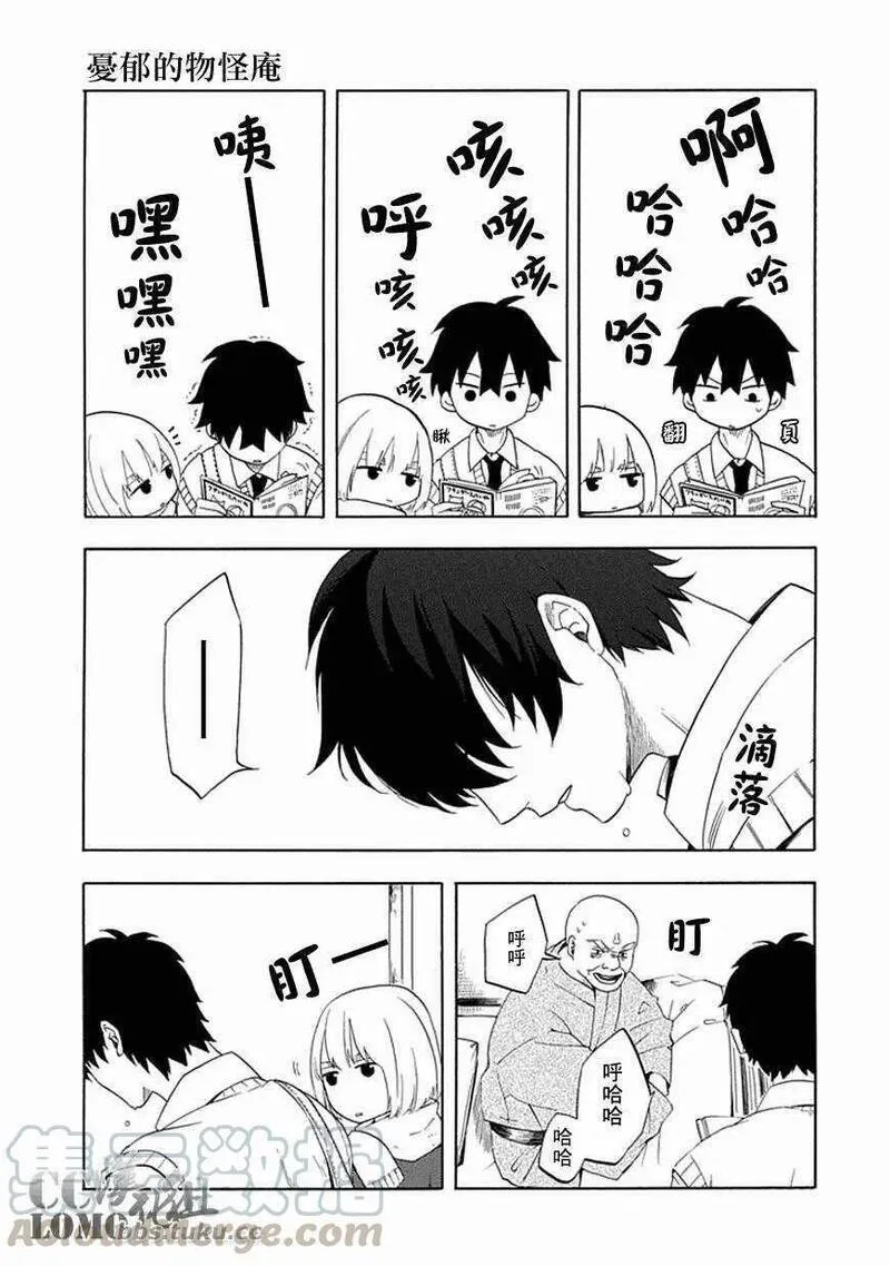 不愉快的妖怪庵又名忧郁的物怪庵不机嫌なもののけ庵,类型为神鬼|校园的高人气漫画,漫画简介:芦屋因为被妖怪附身,因此进入高中就读后,已经整整七天都是在学校保健室渡过。为了设法解决问题,芦屋向两坪大的茶室「妖怪庵」之主求助--于是,解救在种种缘由下误入现世的妖怪们并带其回隐世,不愉快的妖怪庵奇...