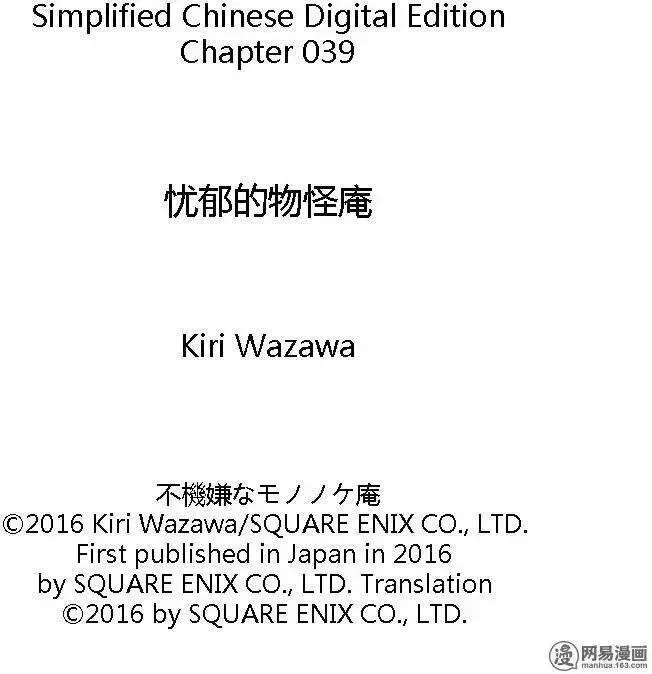 不愉快的妖怪庵又名忧郁的物怪庵不机嫌なもののけ庵,类型为神鬼|校园的高人气漫画,漫画简介:芦屋因为被妖怪附身,因此进入高中就读后,已经整整七天都是在学校保健室渡过。为了设法解决问题,芦屋向两坪大的茶室「妖怪庵」之主求助--于是,解救在种种缘由下误入现世的妖怪们并带其回隐世,不愉快的妖怪庵奇...