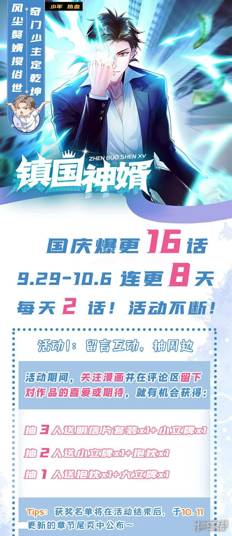 镇国神婿又名,类型为热血|玄幻的高人气漫画,漫画简介:华夏第一家族少主,天下第一奇门传人楚尘,学成下山途中,意外封印了自己的双魂五魄,当了五年的傻子上门女婿。觉醒之后,一代霸婿楚尘喝最烈的酒,打最恶的狗,每天都在上演逆袭人生!