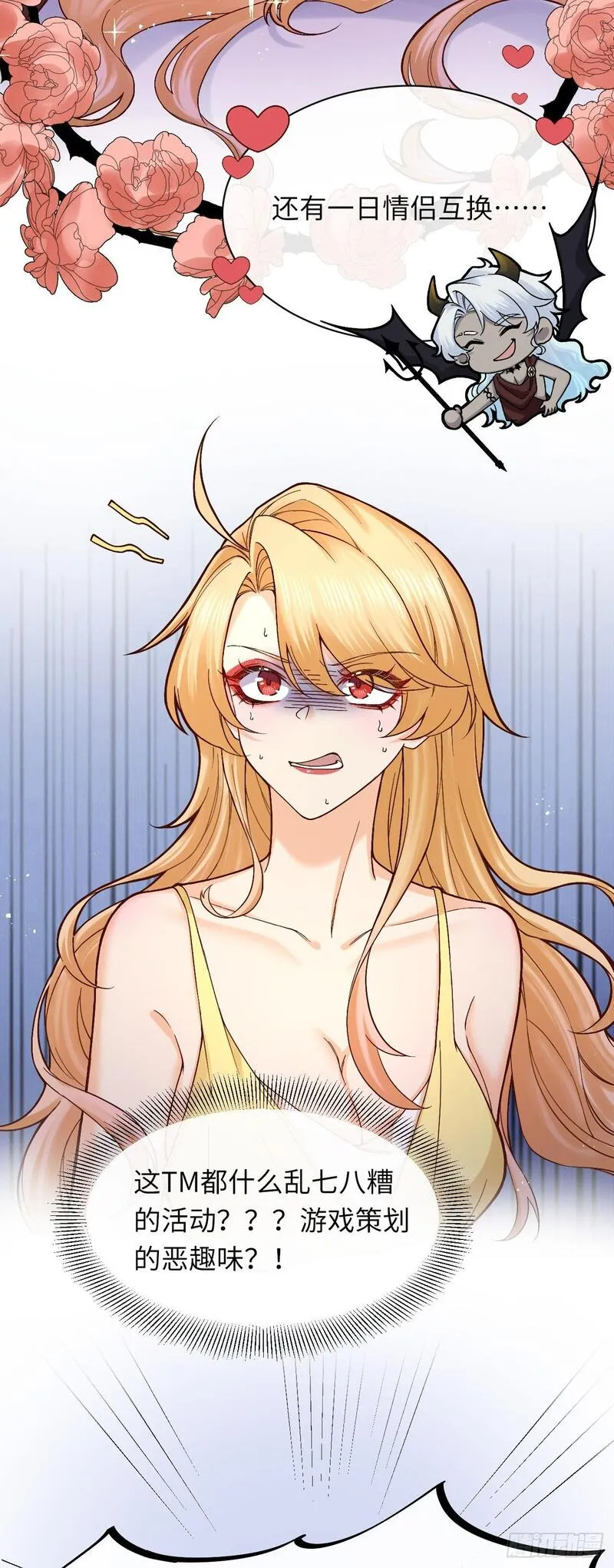 当咸鱼成为风情女王又名,类型为穿越的高人气漫画,漫画简介:996猝死的陶乐斯发誓下辈子当一条咸鱼。眼睛一睁一闭,穿越到18X乙女游戏里,成为臭名昭著的风情女王,玩过游戏的陶乐斯知道,女海王的下场十分凄惨,为了保命,陶乐斯记下两大攻略要点:一、男宠是疯批,得罪...