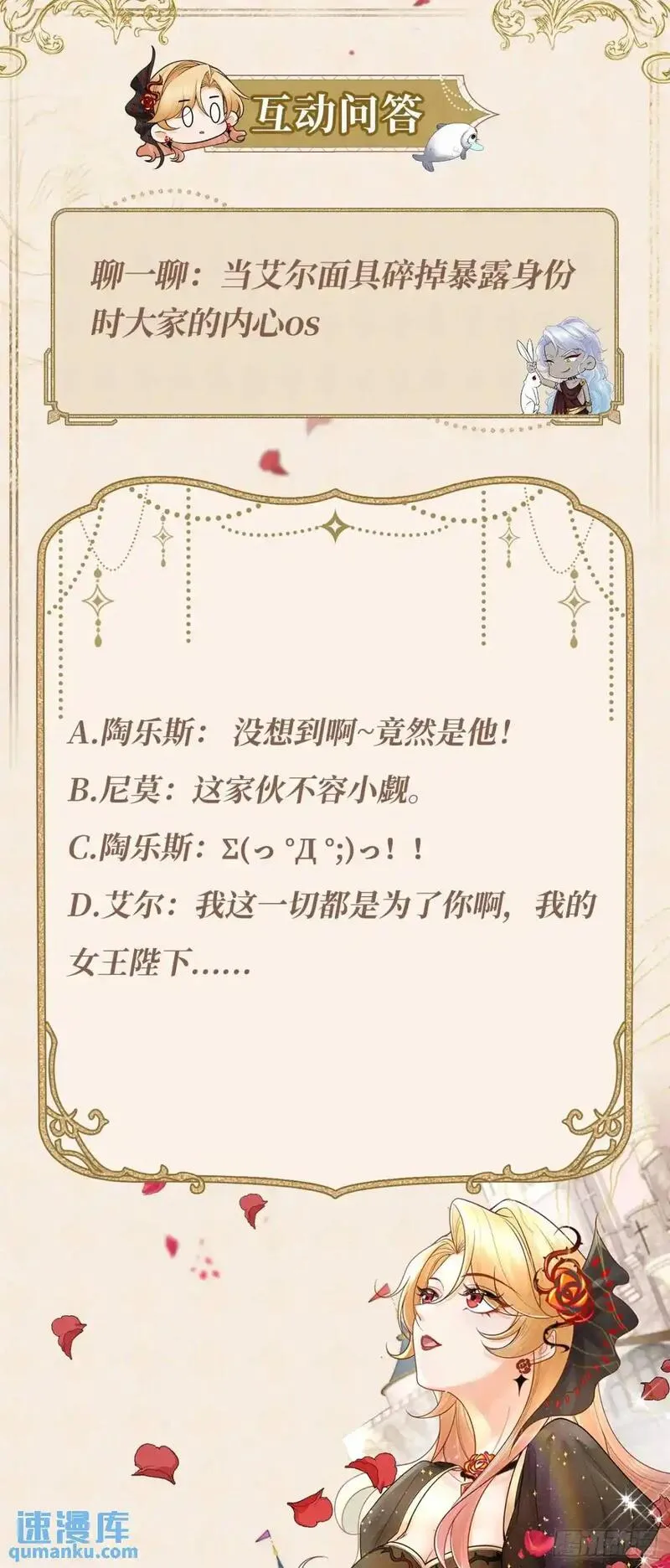 当咸鱼成为风情女王又名,类型为穿越的高人气漫画,漫画简介:996猝死的陶乐斯发誓下辈子当一条咸鱼。眼睛一睁一闭,穿越到18X乙女游戏里,成为臭名昭著的风情女王,玩过游戏的陶乐斯知道,女海王的下场十分凄惨,为了保命,陶乐斯记下两大攻略要点:一、男宠是疯批,得罪...