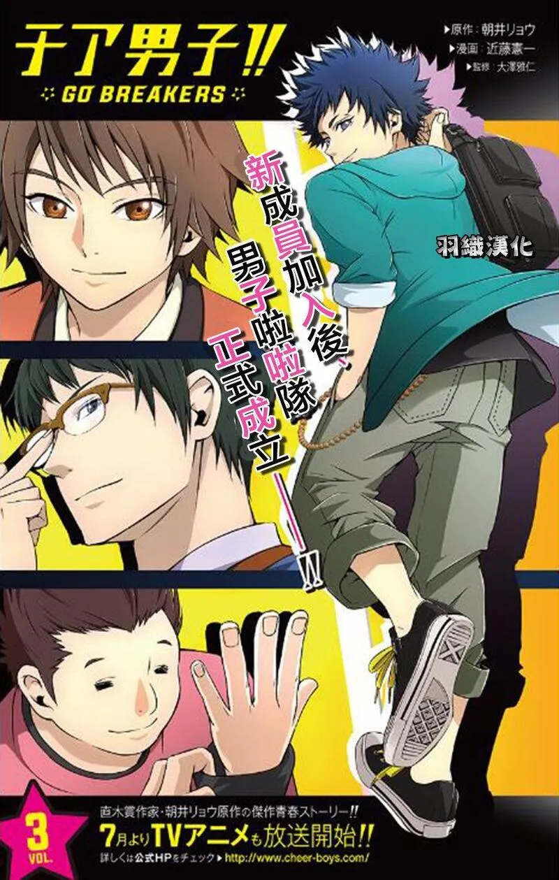 拉拉队男子GO BREAKERS又名男子啦啦队!!,类型为体育竞技的高人气漫画,漫画简介:又名:男子啦啦队!! 《男子啦啦队!!》是由日本小说家朝井辽创作的青春小说。如标题所说,讲述了一群男生为了“世界上唯一一个能够给别人加油的运动”而挥洒青春汗水……