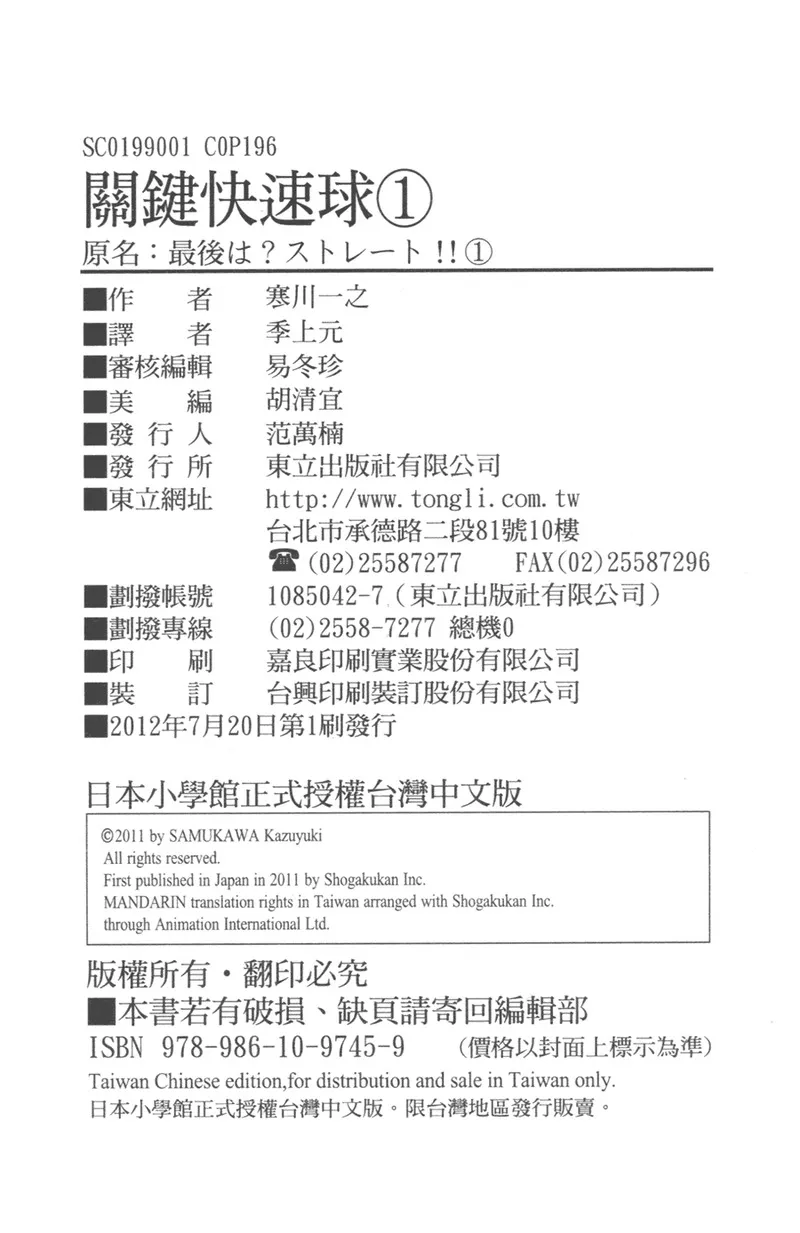 购买 关键快速球 第1卷