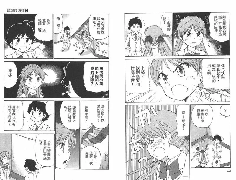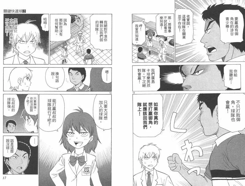 关键快速球又名 ,类型为体育竞技的高人气漫画,漫画简介:私立千刻学园是一所专门培养各的领域的天才的学校,在这里有一个名为高津睦月的学生,他在小学1年级时就被认定是天才。可是6年过去了,他的才能却还没有开花,就在他心灰意冷之际,他与棒球天才──沟口大河相遇了。沟口大河把他错认成是自己的宿敌──御角威斗,并逼他在体育课的棒球比赛上当投手,从此他体内沉睡着的棒球的才能开始崭露锋芒。