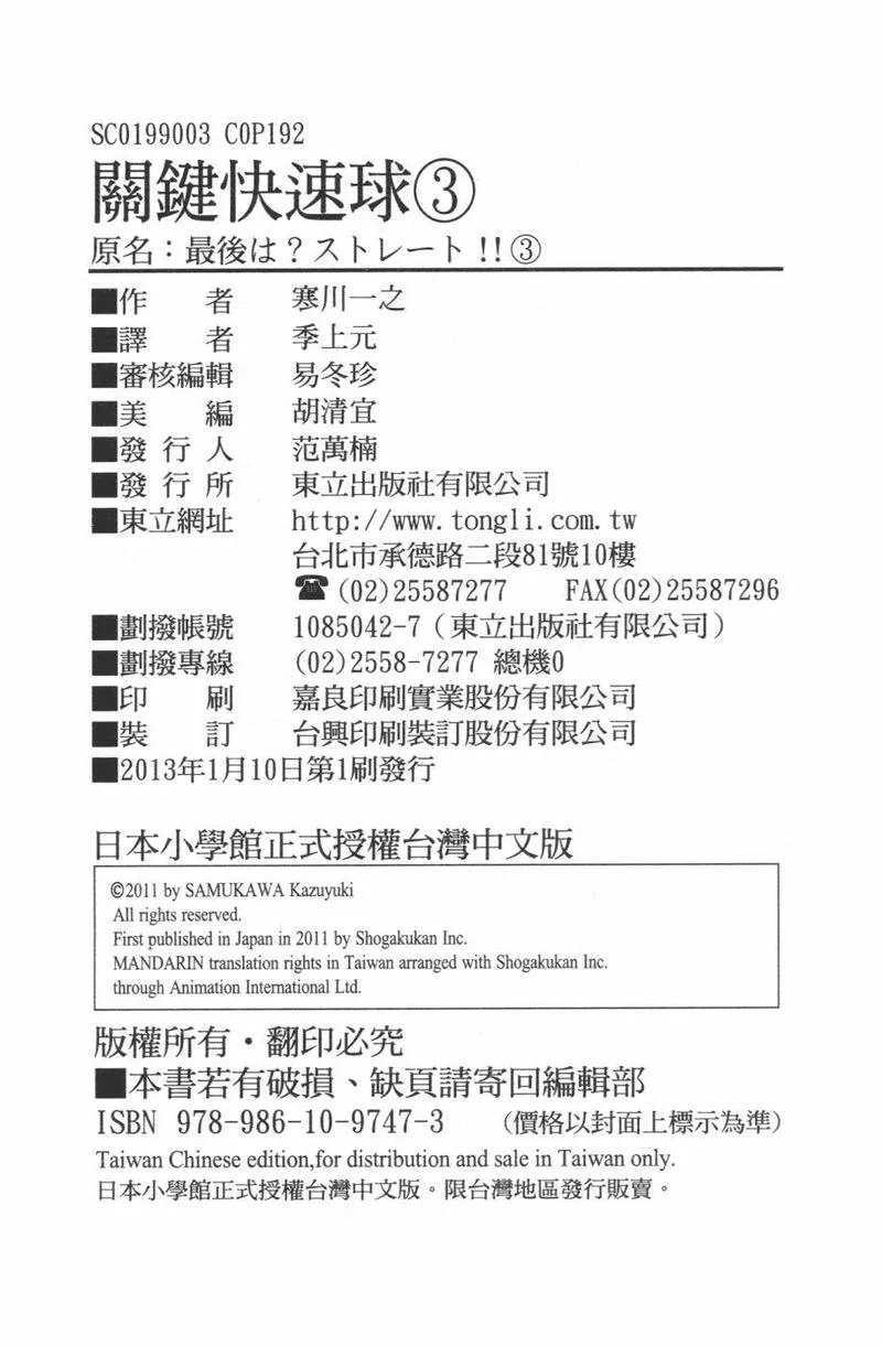 购买 关键快速球 第3卷
