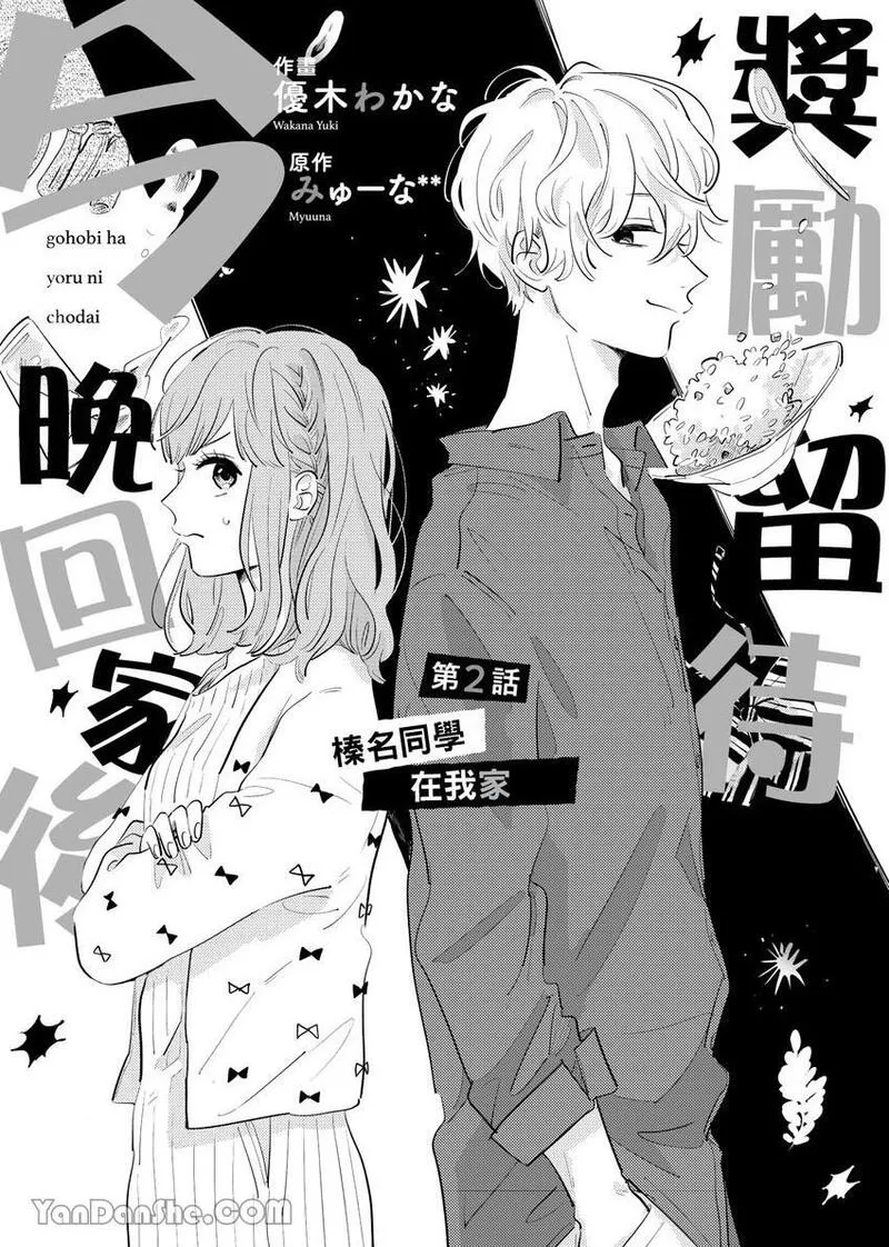奖励留待今晚回家后又名ごほうびは夜にちょうだい,类型为优木わかな|同居|校园|溺爱|女性向的高人气漫画,漫画简介:「如何?很甜吧——」图书委员雏乃某天值日时,发现超受欢迎的榛名同学正睡在图书室。叫醒榛名同学后,雏乃非但被缠上,甚至连初吻都遭到夺走…!雏乃想当作什么都没发生过,但不知为何,当天榛名同学竟出现在她家中,雏乃的母亲还突然宣布两人将同住半年!?自由奔放的榛名同学不断甜蜜逼近、令人心跳加速的同居恋情♡