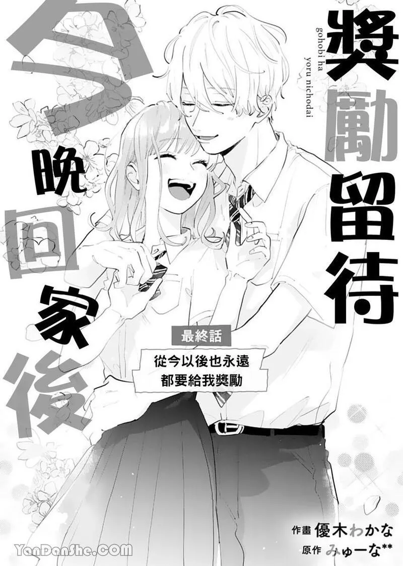 奖励留待今晚回家后又名ごほうびは夜にちょうだい,类型为优木わかな|同居|校园|溺爱|女性向的高人气漫画,漫画简介:「如何?很甜吧——」图书委员雏乃某天值日时,发现超受欢迎的榛名同学正睡在图书室。叫醒榛名同学后,雏乃非但被缠上,甚至连初吻都遭到夺走…!雏乃想当作什么都没发生过,但不知为何,当天榛名同学竟出现在她家中,雏乃的母亲还突然宣布两人将同住半年!?自由奔放的榛名同学不断甜蜜逼近、令人心跳加速的同居恋情♡