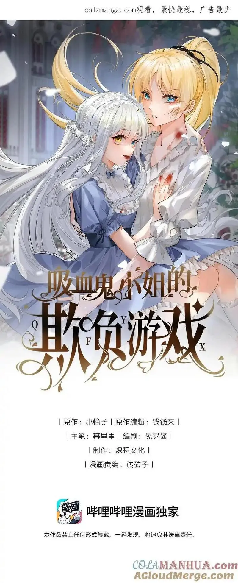 吸血鬼小姐的欺负游戏又名,类型为其它的高人气漫画,漫画简介:血族的先祖伊琳娜,为了看住她的血食—— 一个被诅咒的赏金猎人切尔茜,化身成暗黑小萝莉,伪装成了切尔茜的未婚妻。 却意外和她签订捆绑契约。 伊琳娜原以为画风是:“切尔茜跪下,做我的血奴……”。谁知真实画...