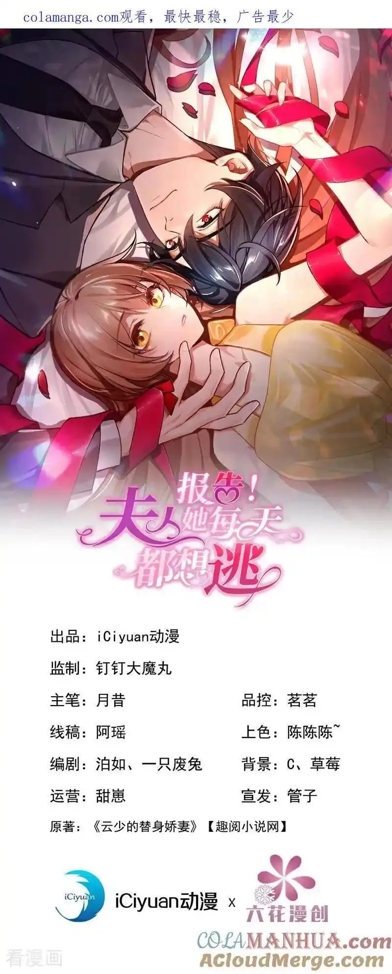 报告!夫人她每天都想逃又名,类型为都市|霸总|爱情|知音漫客的高人气漫画,漫画简介:【每周六更新】为凑钱给母亲治病,姜雪晚代替双胞胎姐姐苏雪棠与滨城陆少一夜欢好,命运的平行线就此相交。她深以为自己是姐姐的替代品,一边想要逃离一边却又清醒地在他温柔里沦陷,殊不知这座万年冰山早已为她化为...
