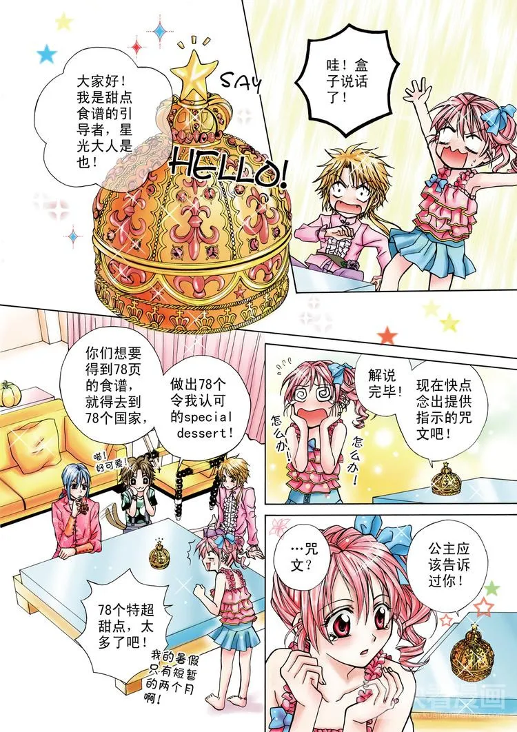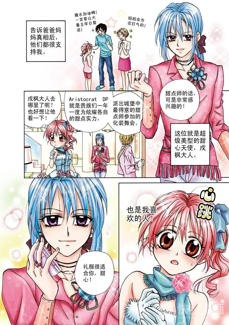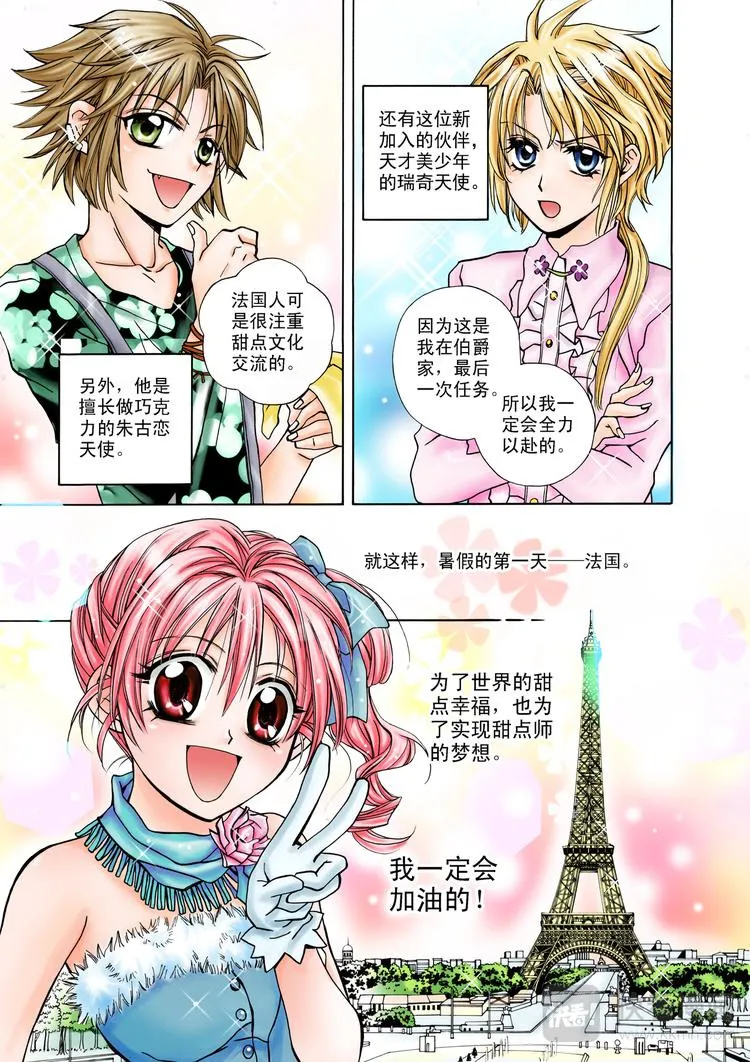 甜心天使又名,类型为连载中|国漫|奇幻||的高人气漫画,漫画简介:一个梦想成为出色甜点师的可爱少女,在一次参加甜点比赛获得优胜后,被邀请来到一个满是美味甜点的世界,正当陶醉在甜点的香味时,却被告知是拯救甜点王国大魔王的关键人物,虽然有过犹豫,但为了爱与梦想,毅然决定与王国的四位甜心天使一起搜集甜点食谱,拯救出甜点大魔王!