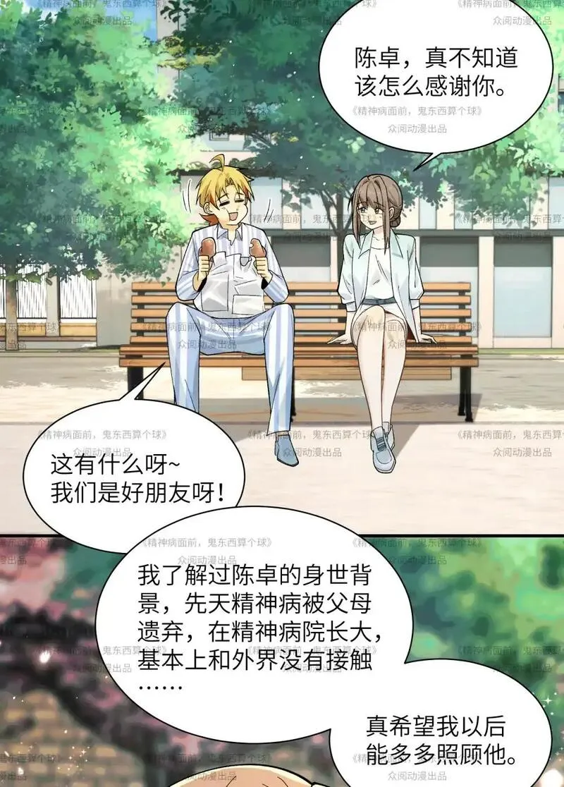 精神病面前,鬼东西算个球又名,类型为的高人气漫画,漫画简介:陈卓是一名青山精神病医院的患者,系统未能将他成功治愈。系统:随他便吧,我只提供技术支持。